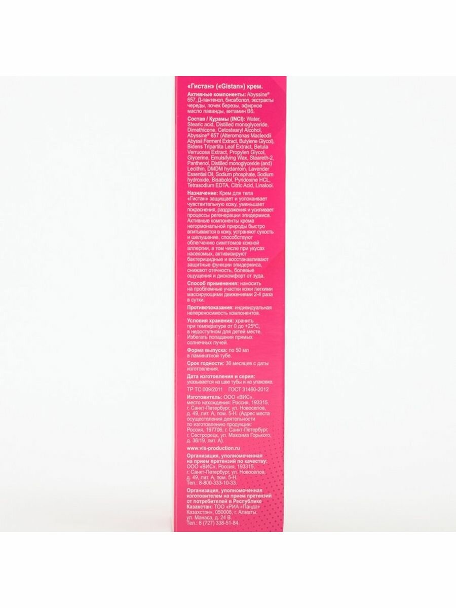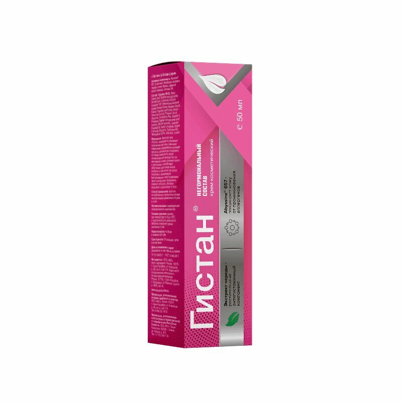 «Гистан» крем предназначен для ухода за чувствительной кожей. Крем защищает и успокаивает чувствительную кожу, уменьшает покраснения, раздражения и усиливает процессы регенерации эпидермиса. Активные компоненты крема негормональной природы быстро впитываются в кожу, устраняют сухость и шелушение, способствуют облегчению симптомов кожной аллергии, при укусах насекомых, активизируют бактерицидные и восстанавливают защитные функции эпидермиса, облегчают дискомфорт от зуда, снижают отечность и болевые ощущения.