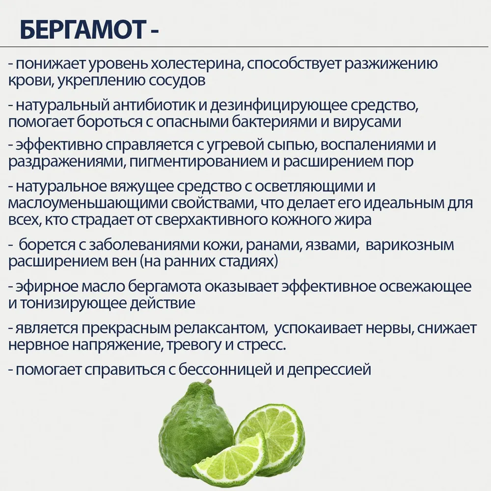 Эфирное масло бергамота способствует снижению проявлений депрессии и апатии. Оно возвращает к жизни самых безнадежных пессимистов, заряжает жизненной энергией.