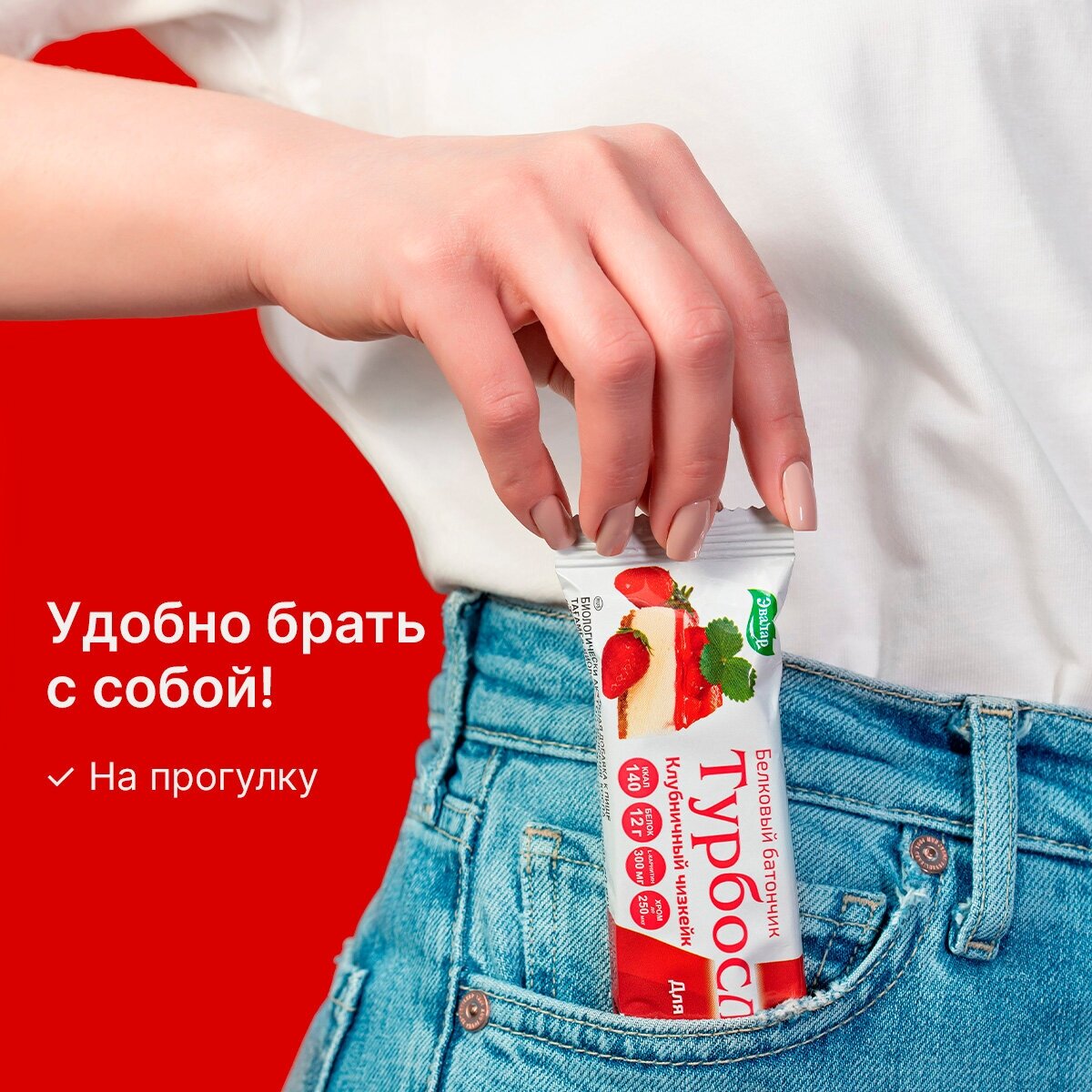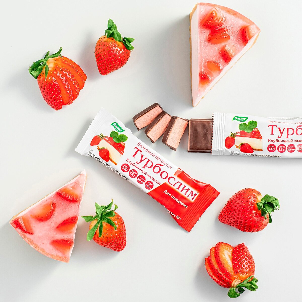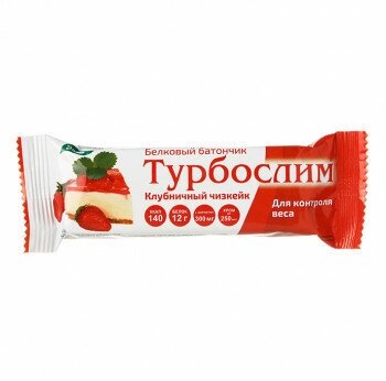 Насладитесь превосходным вкусом любимого десерта в высокобелковом батончике Турбослим! Белковый батончик Турбослим «Клубничный чизкейк»: всего 140 ккал; уникальный состав: 12 г белка, 300 мг L-карнитина, до 250 мкг хрома; вегетарианский продукт: содержит ингредиенты только растительного происхождения; вкус любимого десерта. Питайтесь правильно везде, ведь так легко отказаться от калорийного десерта, если у вас под рукой есть батончики Турбослим! Их удобно носить с собой и без труда можно вписать в ваш рацион правильного питания в качестве перекуса или для замены одного из приемов пищи. Включение белкового батончика Турбослим в дневной рацион питания – это отличный способ запустить программу для потери веса и поддержания здоровья. Питайтесь правильно! Батончики Турбослим – полезный перекус без лишних калорий! В любое время дня, без вреда для фигуры и угрызений совести!