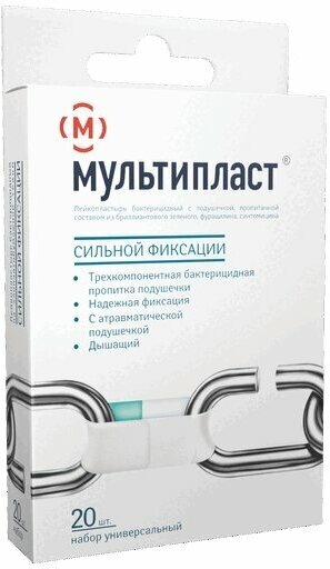 ЛЕЙКОПЛАСТЫРЬ МУЛЬТИПЛАСТ НАБОР БАКТ. СИЛЬН.ФИКСАЦ. (БЕЛАЯ ОСН.) N20 НОВОСИБХИМФАРМ