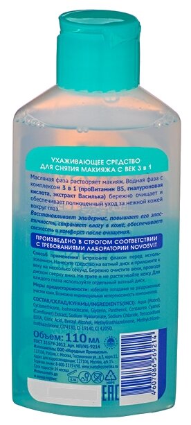 Средство для снятия макияжа Novosvit Ухаживающее 3 в 1 обеспечивают деликатный уход и восстановление кожи вокруг глаз. Без жирной пленки, отдушек и парабенов!