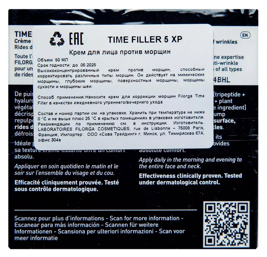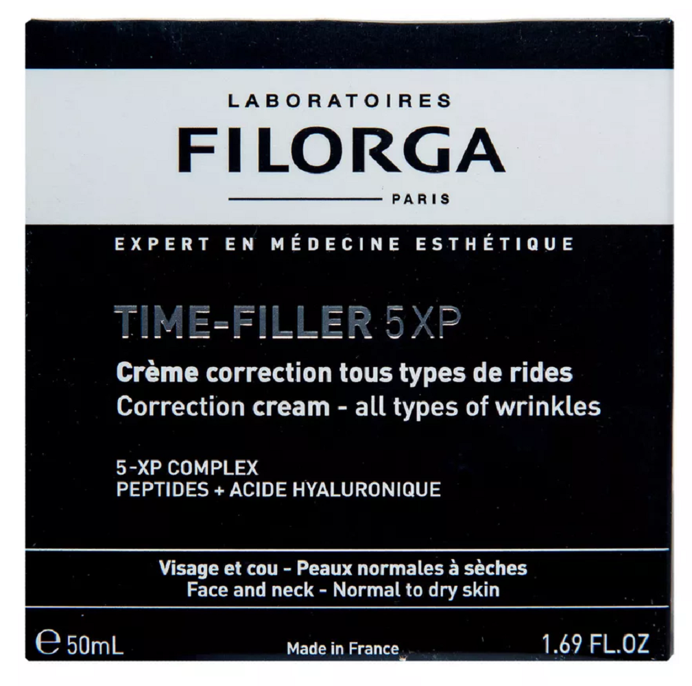 FILORGA обновляет свой самый популярный крем против морщин, который действует одновременно на 5 типов морщин (мимические, глубокие, поверхностные, линии обезвоженности и на коже шеи), благодаря основной формуле 5XP, вдохновленной 5 методами эстетической медицины. Его уникальная формула разработана для борьбы даже с самыми глубокими морщинами. Обеспечивает коже свежесть, эластичность и ощущение комфорта. Также крем Тайм-филлер 5ХР обеспечивает профилактику появления новых морщин и повышает упругость, плотность кожи. Активные компоненты: трипептид создан на основе инъекций ботулотоксина, который расслабляет черты лица без замораживания мимики; комплекс коллагенового бустера придает коже матовость и заполняет морщины; морской фенхель для разглаживания поверхностных морщин, не раздражая кожу; NCEF комплекс сочетается с мощным растительным экстрактом критмума, вдохновленным инъекциями ревитализации. Это растение удерживает воду и интенсивно питает кожу.