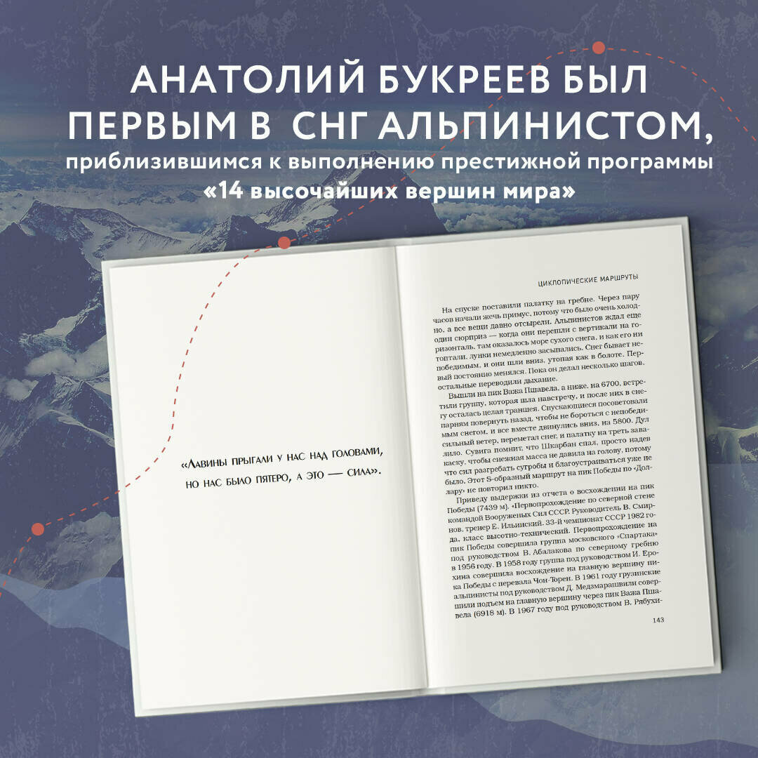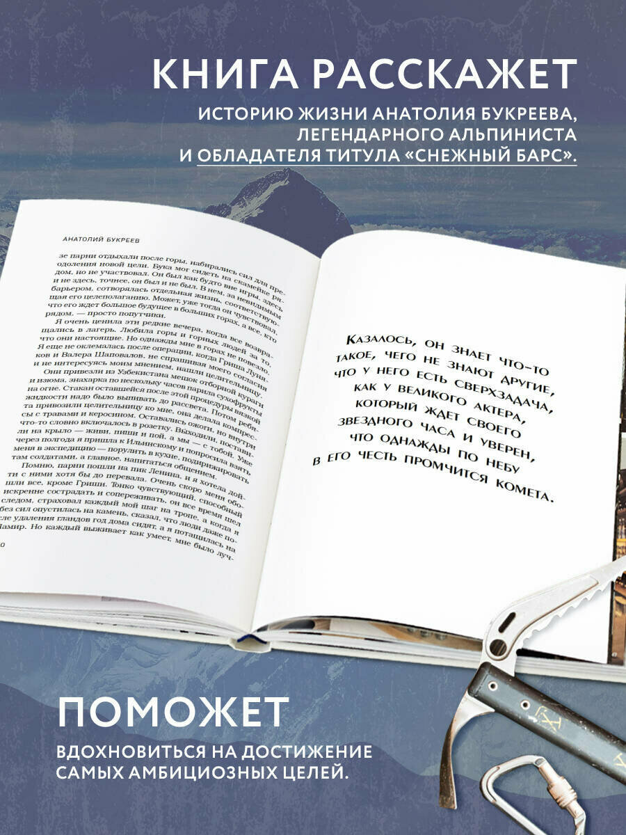 Невероятная книга не только о Анатолии Букрееве, но и о советском альпинизме в целом. Читаешь ее и как будто сама поднимаешься на Пик Коммунизма, пережидаешь непогоду в базовом лагере Эвереста, идешь на Анапурну.. Букреев конечно личность невероятная, безумно жаль что жизнь его оборвалась так рано.. ну и стихи его после прочтения этой книги просто режут сердце: