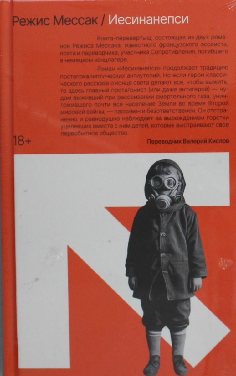 Роман с непроизносимым названием «Иесинанепси» продолжает традицию постапокалиптических антиутопий. Но если герои классического рассказа о конце света делают все, чтобы выжить, то здесь протагонист (или, скорее, антигерой) — чудом уцелевший при рассеивании смертельного газа, уничтожившего почти все население земли во время Второй мировой войны (через четыре года она действительно начнется!), изначально пассивен и безответственен. Он отстраненно, равнодушно, цинично наблюдает за вырождением горстки уцелевших вместе с ним детей. Отмечает, как коверкается и обедняется их язык, стирается воспитание, теряются воспоминания о прошлой жизни, а помимо этого — как формируется новый жаргон, создается новая религия и устанавливается закон: выживает сильнейший. На глазах героя вчерашние школьники превращаются в дикарей каменного века и выстраивают свое первобытное общество.