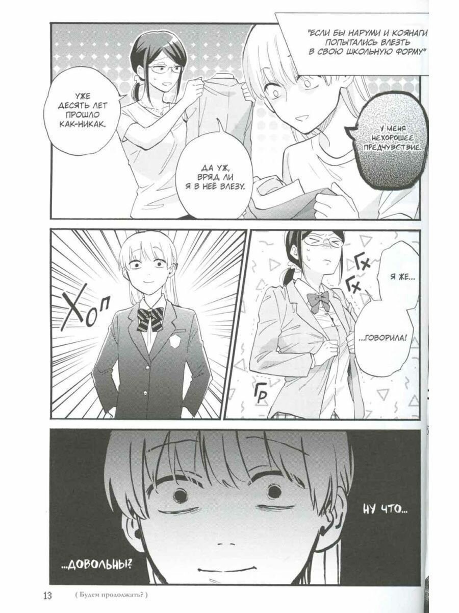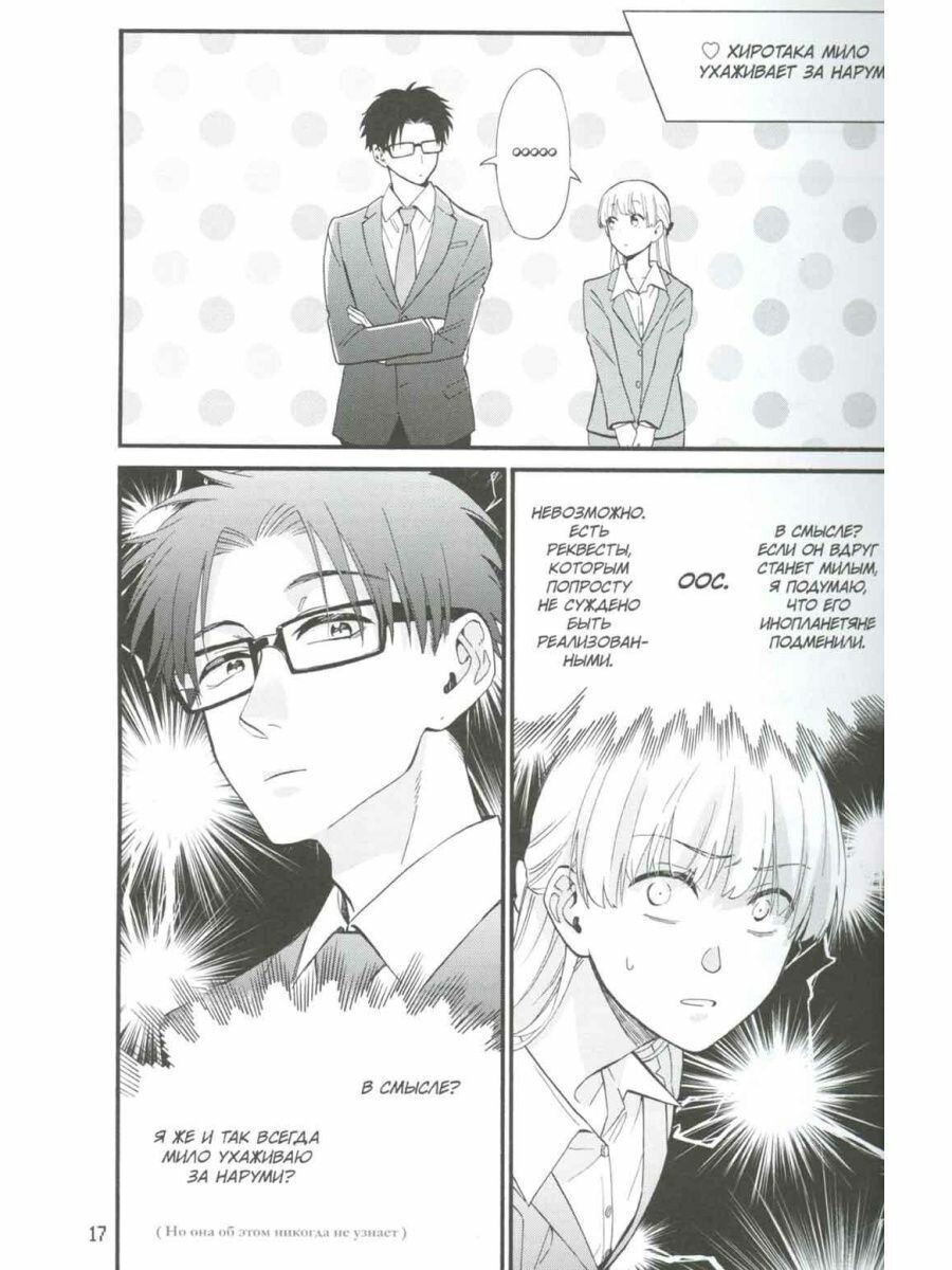 Персонажей ждут крупные изменения: Кабакура будет пытаться сообщить коллегам о помолвке, три главные героини впервые встретятся в реальной жизни (…чтобы поиграть в одевалку для девочек?), а Хиротака наконец-то покажет себя достойным старшим братом… Тем временем Ко и Наоя, возможно, осознают свои истинные чувства (?). Не пропустите сорок бонусных страниц, повествующих об их трогательном дне вместе! Как Наоя отреагирует на Ко в женственном образе?..