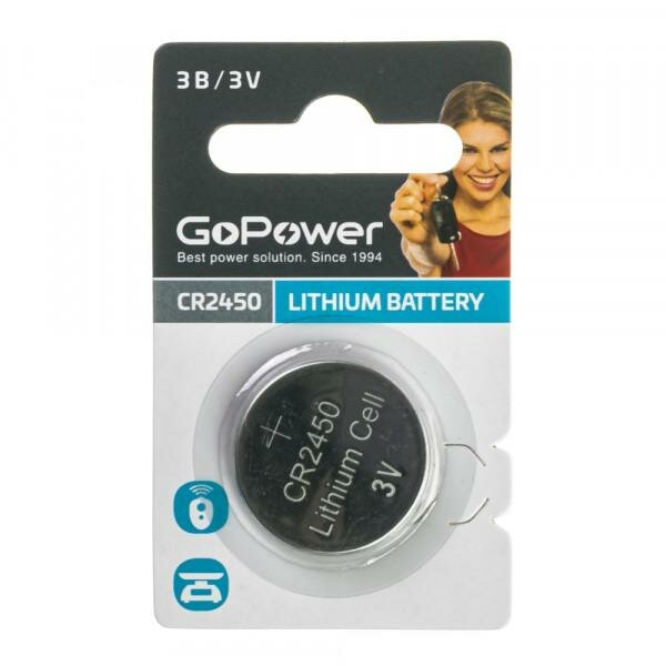 Батарейка GoPower 00-00023125 BL1 Lithium 3V (1/40/2000) CR2450