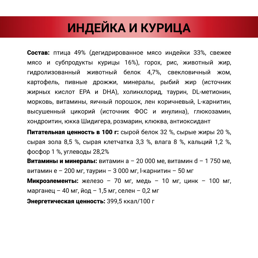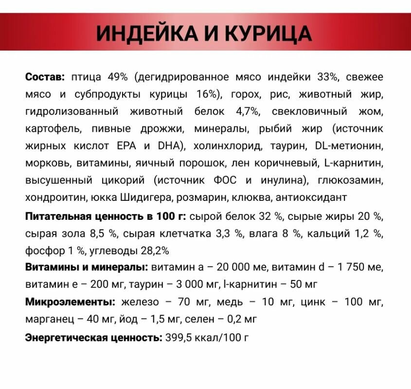 | Состав корма | Индейка |