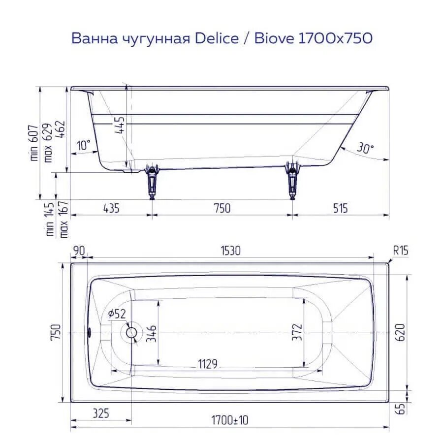 | Размеры ванны (см) | Размером 170x75 |