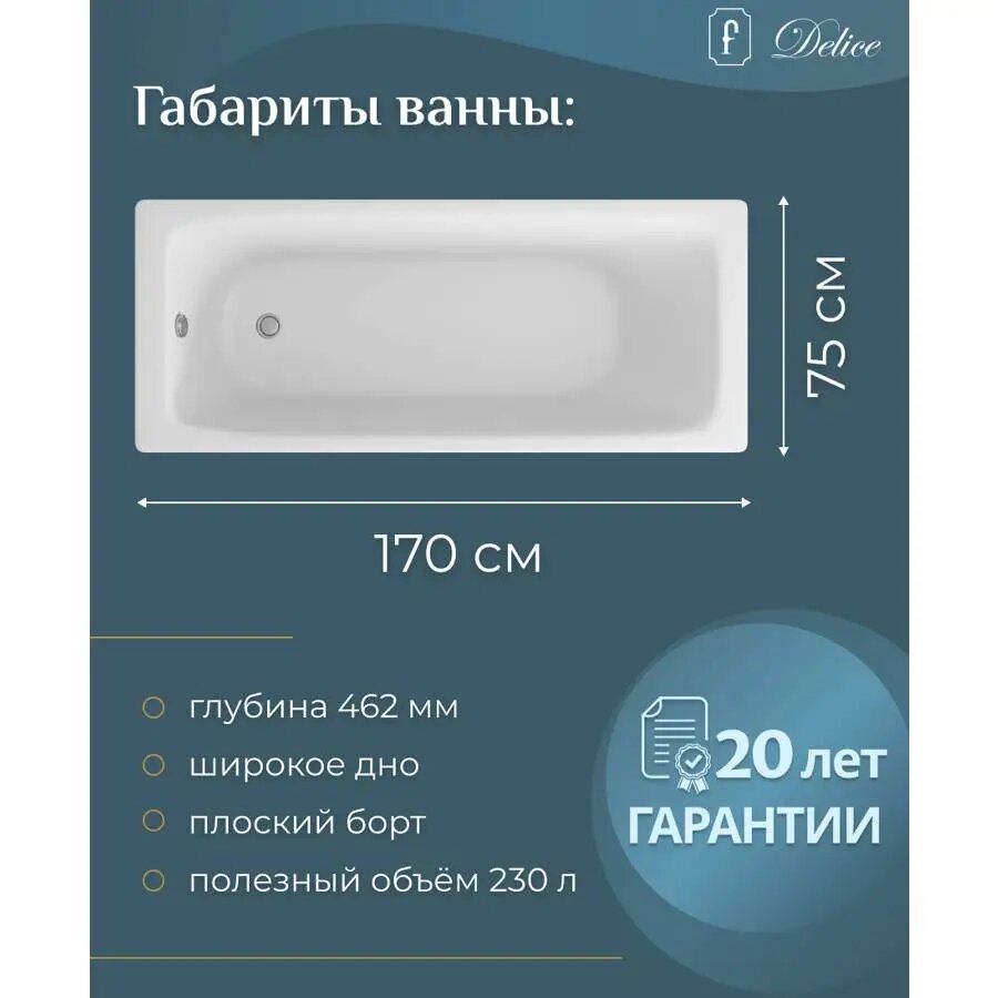 Сервис сравнения цен СкидкаГИД предлагает сравнить цены на товар «Чугунная ванна Delice Biove 170х75 правая (DLR220509R)»