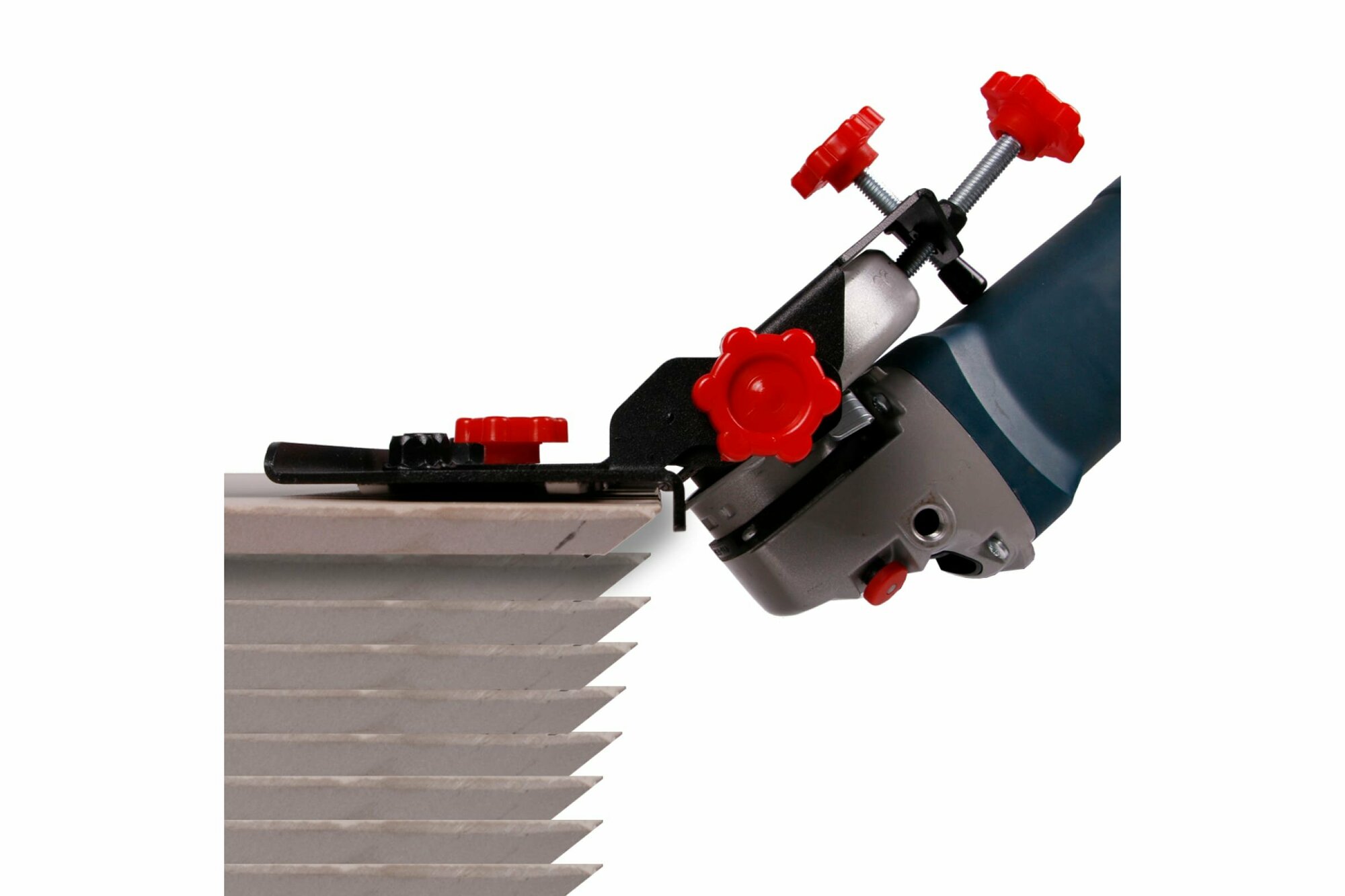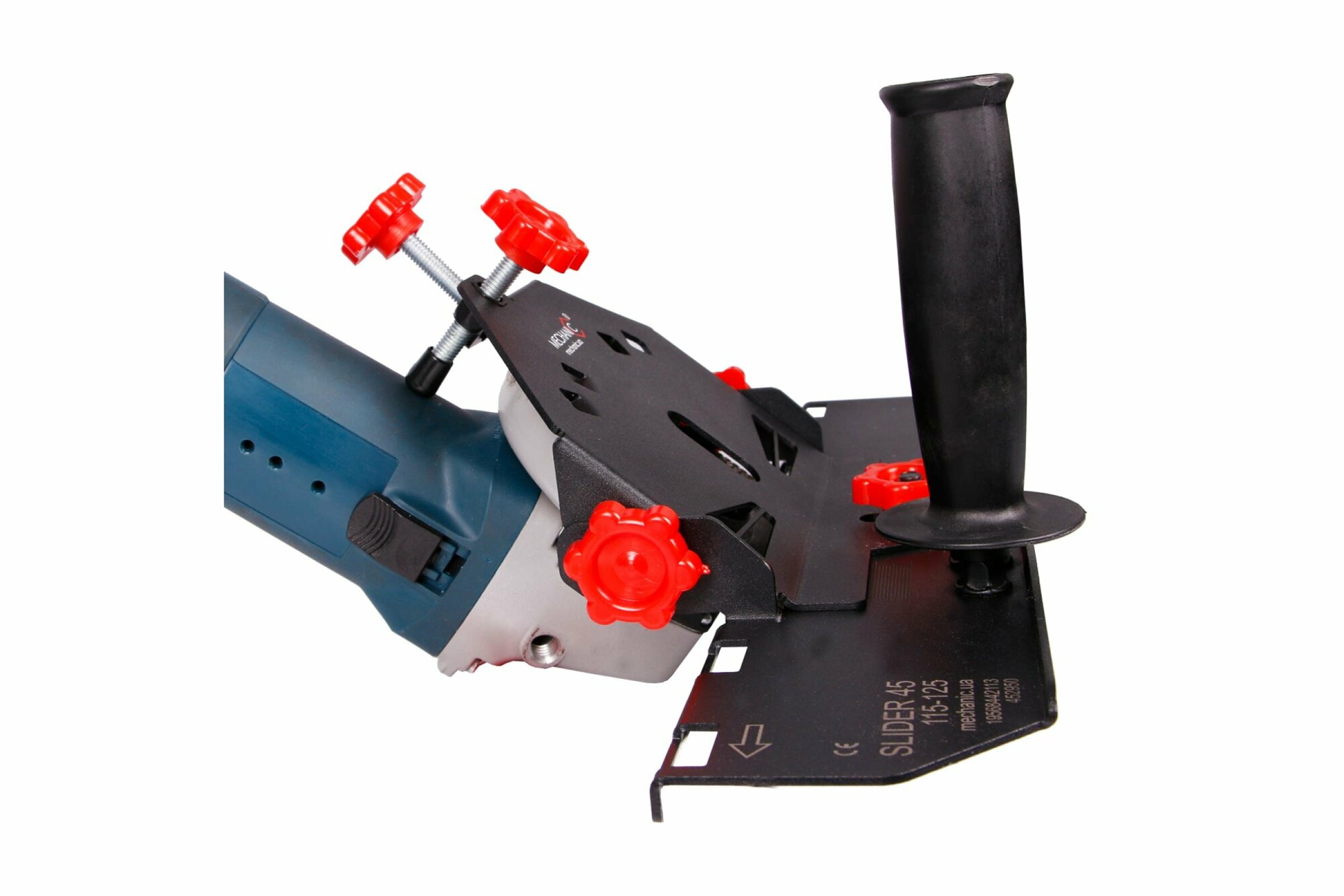 Насадка на угло-шлифовальную машину для резки под углом 45 градусов. SLIDER подходит к любой болгарке без привязки к бренду. Размеры заусовки пользователь может настроить по своим нуждам. Фторопластовые направляющие не царапают плитку и не стираются в процессе эксплуатации. Наблюдать и корректировать направление можно за счет открытой просматриваемой конструкции. Инженеры проектировали оборудование, консультируясь со строителями и плиточниками. Поэтому эргономика Mechanic так проста и удобна.