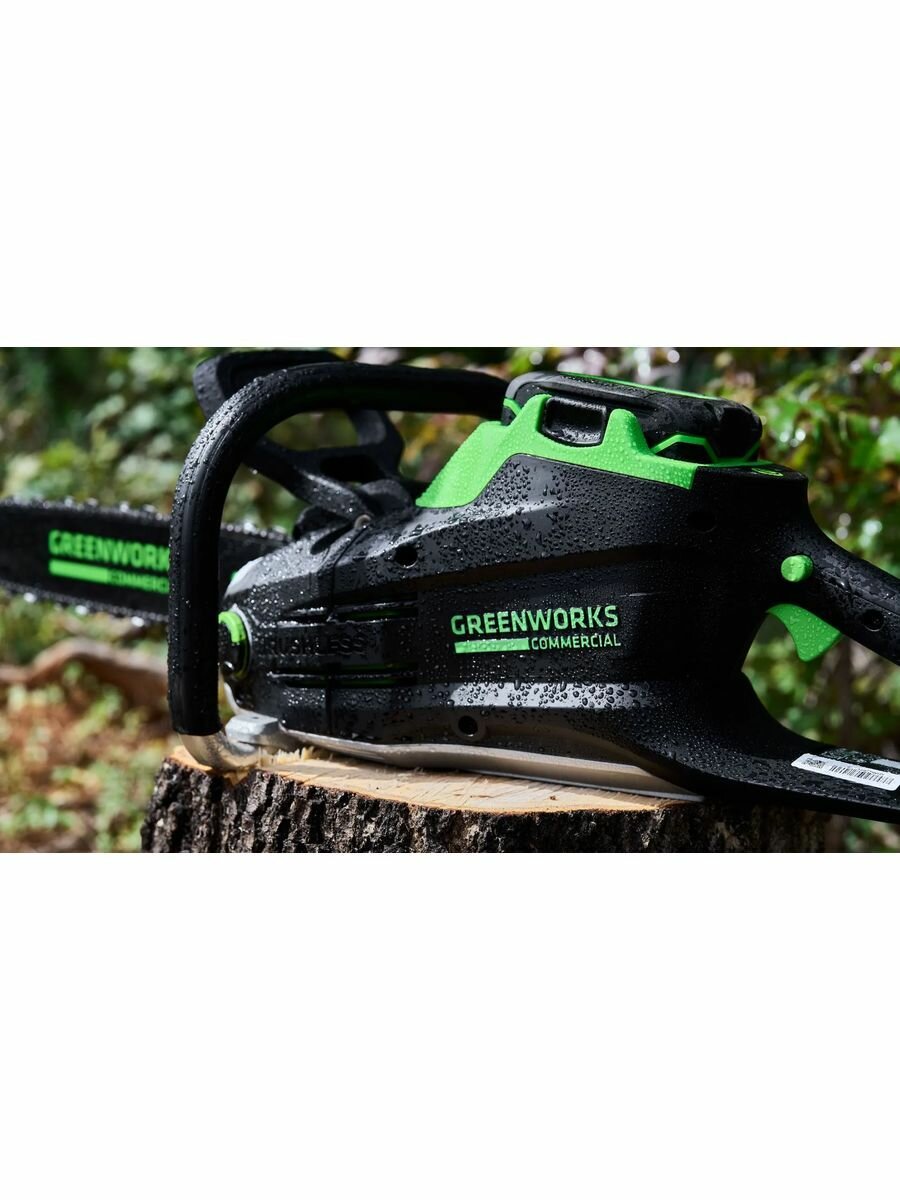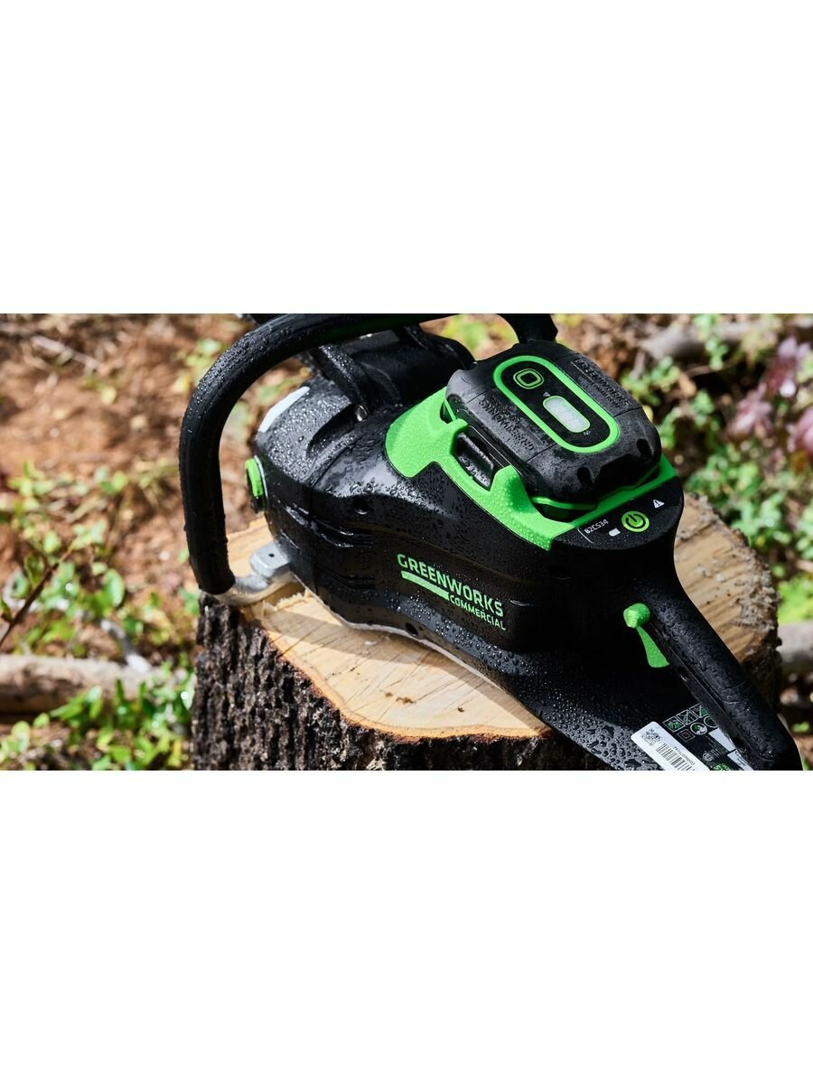 Цепная пила аккумуляторная Greenworks GC82CS51, 82V, 51 см, бесщеточная, без АКБ и ЗУ из линейки техники 82V Commercial — профессиональная цепная пила, которая отлично работает с любой древесиной. Самая производительная пила в ассортименте Greenworks.