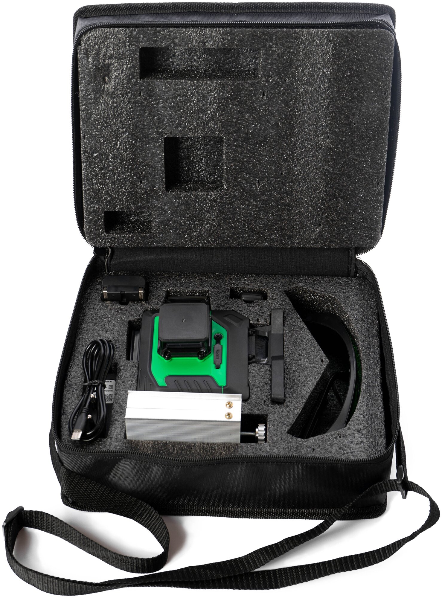 | Комплектация | Лазерный уровень, литиевый аккумулятор, зарядное устройство, подъемная площадка, лазерные очки, пульт дистанционного управления, инструкция, сумка-чехол. |