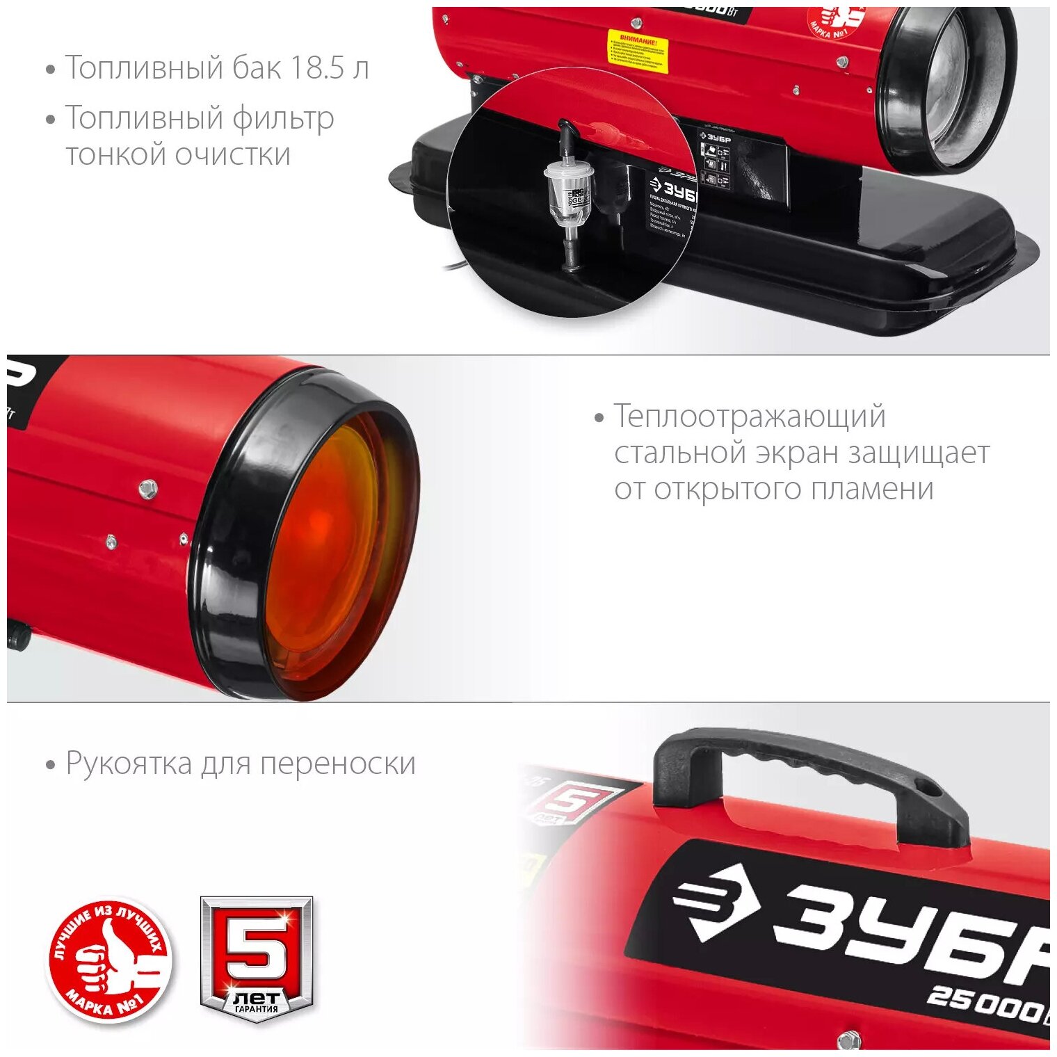 Отечественная компания ЗУБР предлагает покупателям серию Мастер - высокоэффективные тепловые пушки на дизельном топливе. В серию включены несколько изделий с различной мощностью и производительностью, что упрощает подбор под конкретное требование. Надежный корпус и основные узлы обеспечивают долгий срок службы.