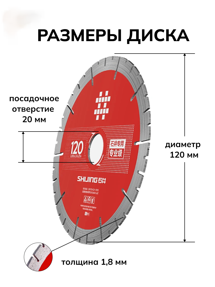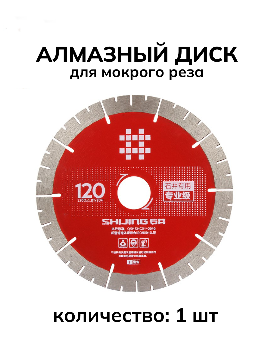 Отрезной алмазный диск для станков Shijing диаметром 120 мм предназначен для резки и в то же время шлифовки торцов керамогранита, камня и кафельной плитки с высокой скоростью и точностью реза. Отличается от обычных дисков повышенной износостойкостью за счет специального спекания алмазных сегментов, которые надежно приварены лазерной сваркой. Все алмазные круги Shijing прошли контроль качества и уже завоевали доверие пользователей, которые приобрели и испробовали их высокое качество на своих электрических плиткорезах.