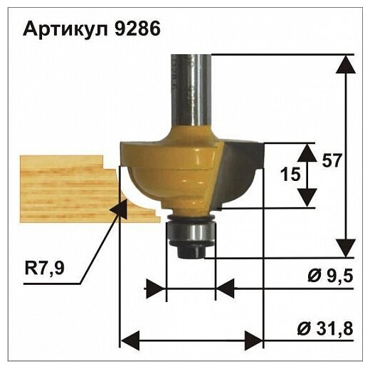 Фреза кромочная калевочная Энкор 318*15мм хв.8мм 9286
