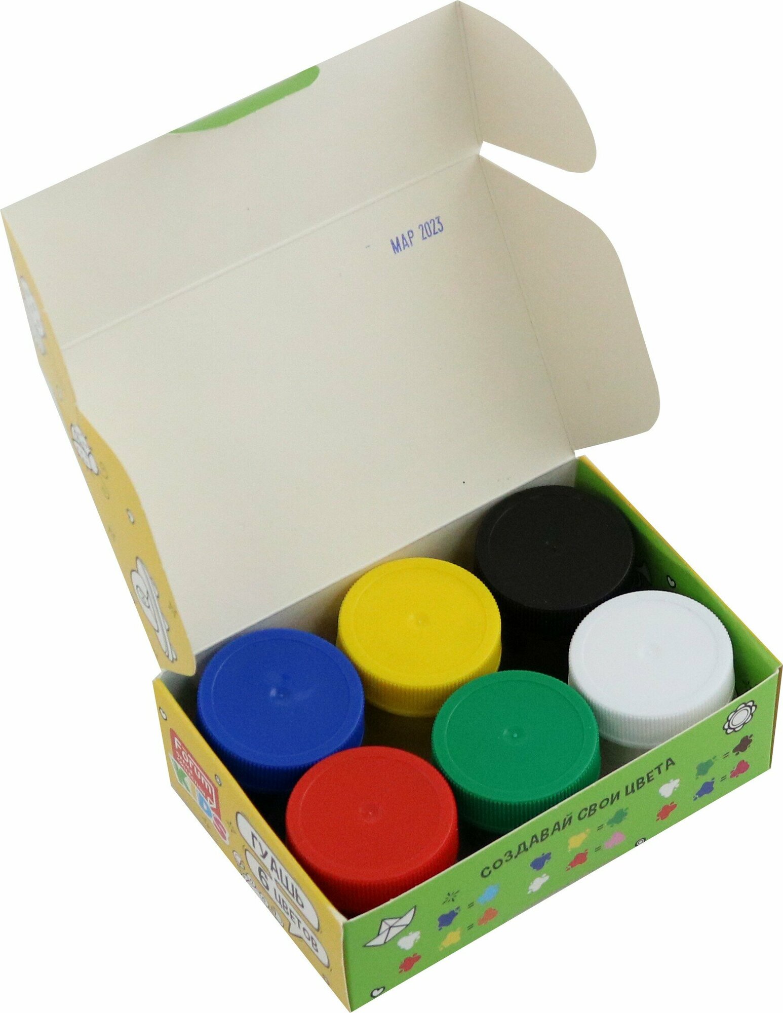 Гуашь в баночках с надёжной, цветной винтовой крышкой.