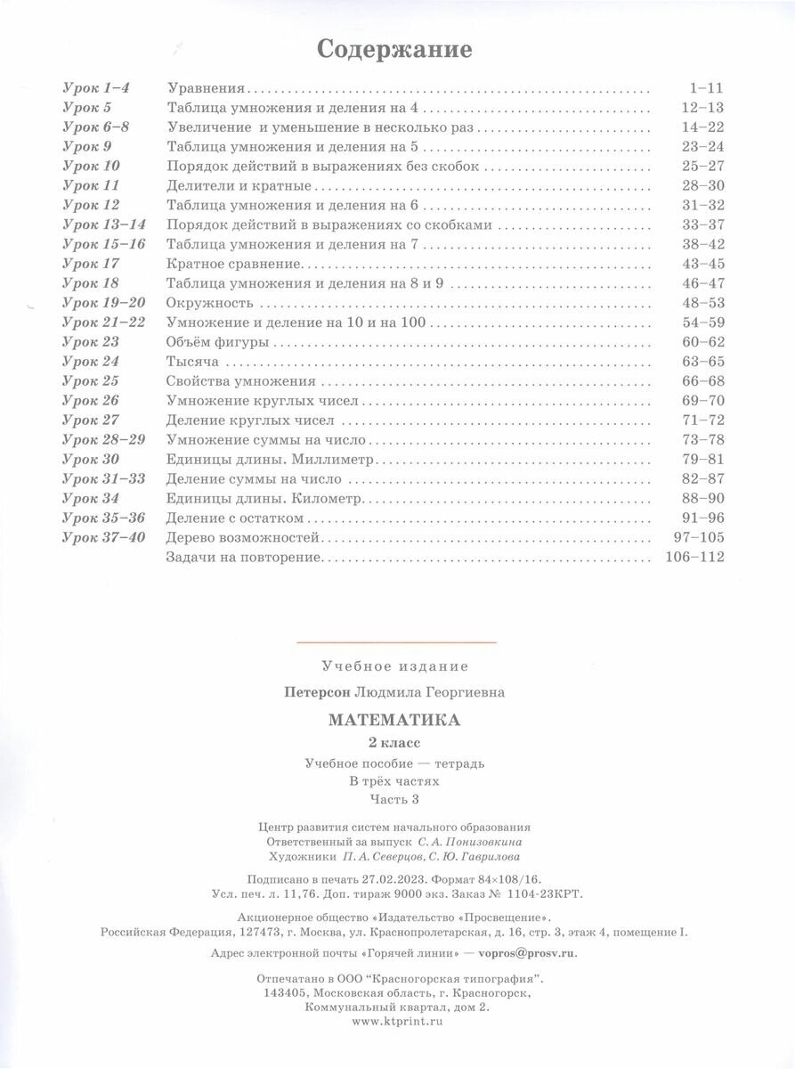 Математика. 2 класс. Учебник-тетрадь. В 3-х частях. ФГОС (Людмила Георгиевна Петерсон); Просвещение, 2024