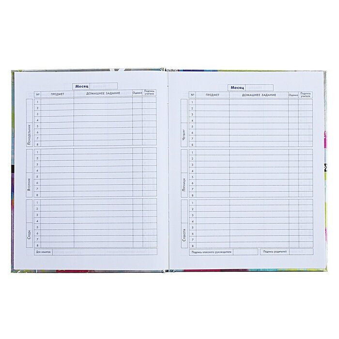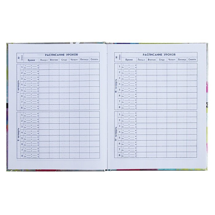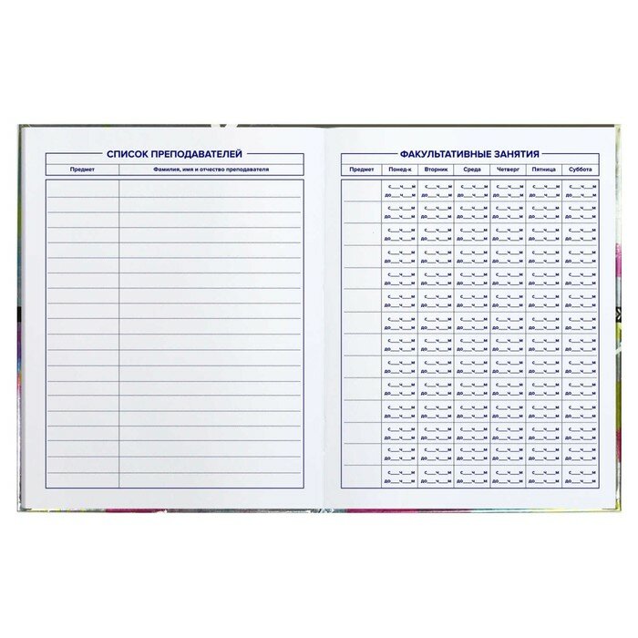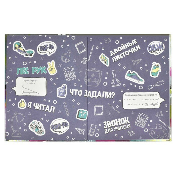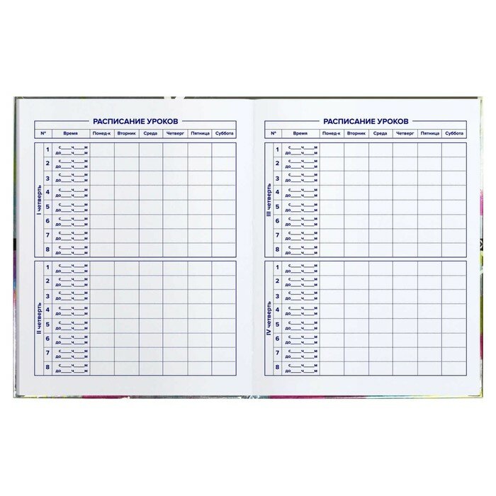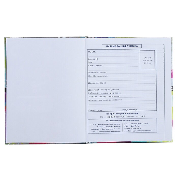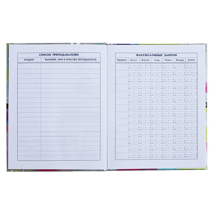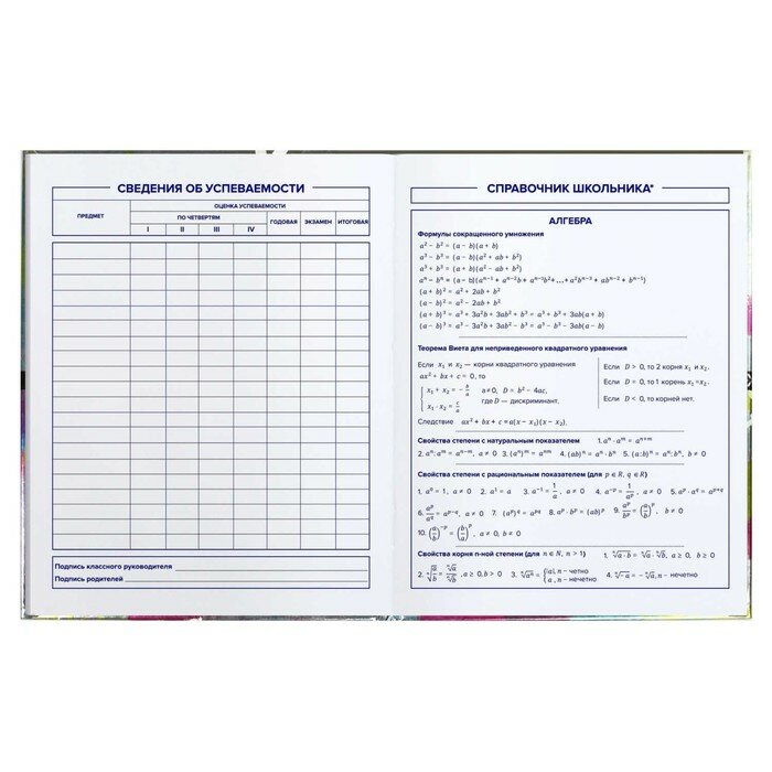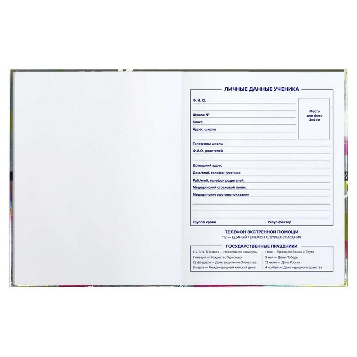 Дневник школьный 5-11 класс, формат А5+, 48 л., твёрдый переплёт 7БЦ, отделка обложки: полноцветная печать, печать по фольге, глянцевая ламинация, дизайнерский форзац , углы обложки прямые, углы блока прямые, красочность блока: печать в одну краску, красочность форзаца: полноцветная печать. Блок: бумага - белый офсет, 65 г/м2, шпаргалка для старших классов.