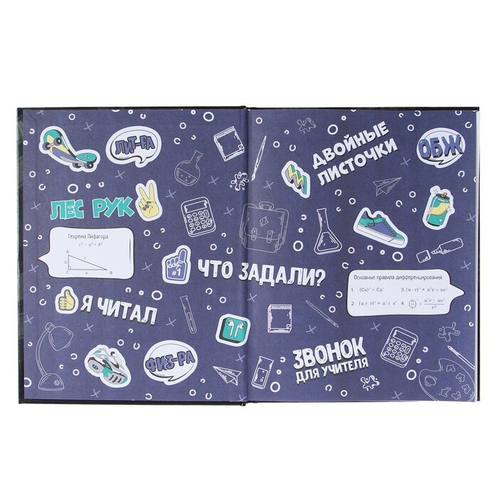 Дневник шк. 5-11 класс, формат А5+, 48 л., твёрдый переплёт. полноцветная печать, глянцевая ламинация, углы обложки прямые, красочность форзаца: полноцветная печать, красочность блока: печать в одну краску. Блок: бумага - белый офсет, 65 г/м?, шпаргалка для старших классов.