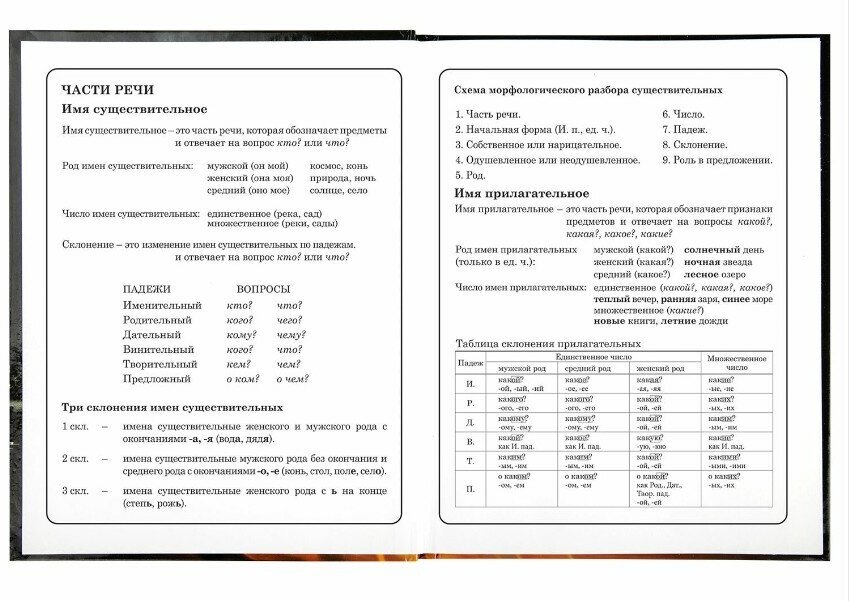 Предназначен для учащихся начальных классов. Твердая обложка надежно защищает бумагу и долго сохраняет привлекательный внешний вид. Благодаря глянцевой ламинации краски на изображении становятся более яркими и насыщенными, исключается возможное истирание рисунка. Внутренний блок содержит 48 листов и состоит из офсетной белой бумаги плотностью 60 г/м2. В справочном материале собраны основные подсказки для учащихся.