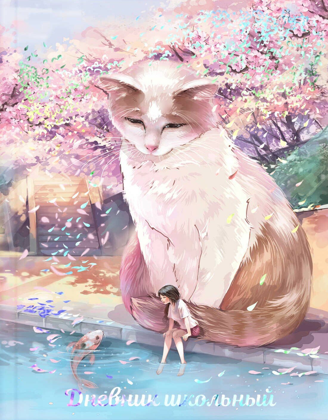 Дневник школьный Кот и девочка А5+ 48 листов Феникс+
