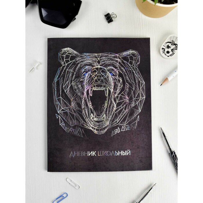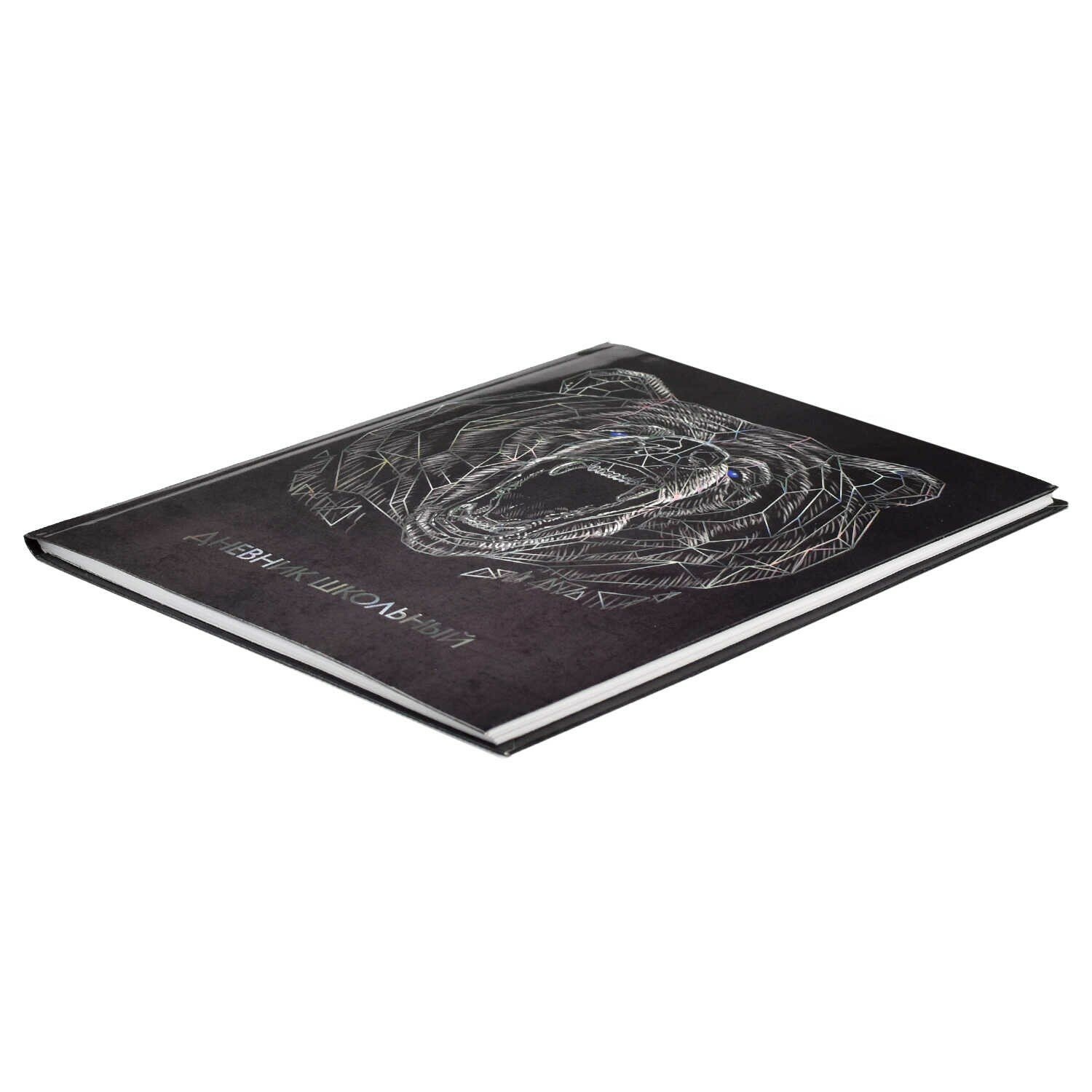 Дневник школьный, формат А5+, 48 л., интегральный переплёт. Обложка: мелованный картон 190 г/м2, полноцветная печать, тиснение голографической фольгой, глянцевая ламинация, углы обложки прямые, углы блока прямые, красочность форзаца: печать в одну краску, красочность блока: печать в одну краску. Блок: бумага - белый офсет, 65 г/м2, универсальная шпаргалка.