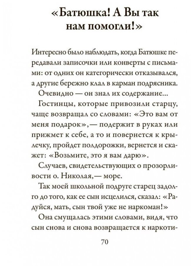 Наш православный народ всегда стремился к старцам. Что искал он в них? Вразумления, доброго совета, утешения? И этого тоже. Но прежде всего — СВЯТОСТИ! Святости жаждала душа человеческая и тянулась к тем, в ком видела ее. Отец Николай и был таким старцем. Жил на маленьком острове посреди Псковского озера тихий светлый старец, и к нему ехали люди на этот остров со всего мира. Зачем? Ответ вы найдете в этой книге.