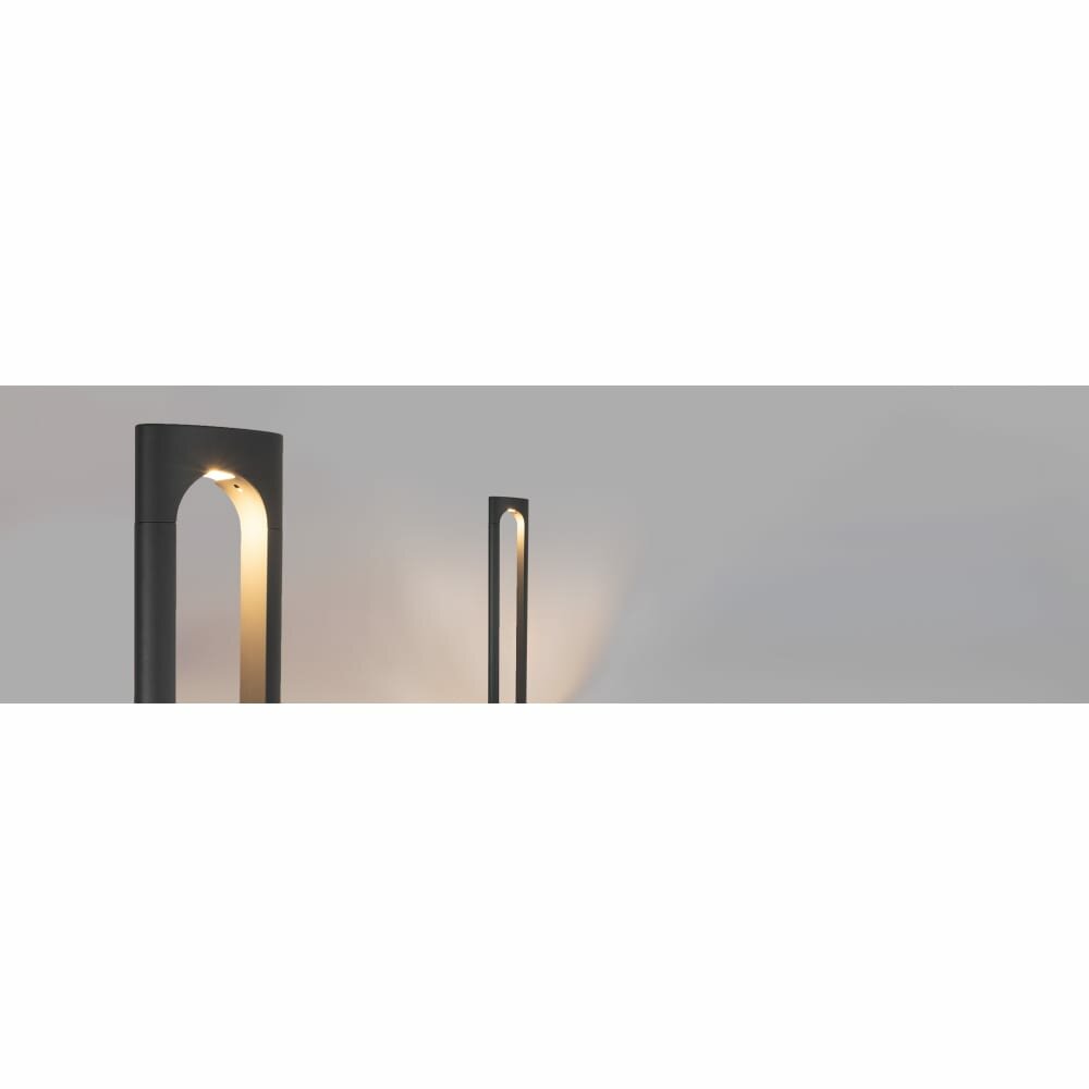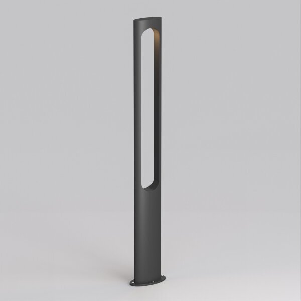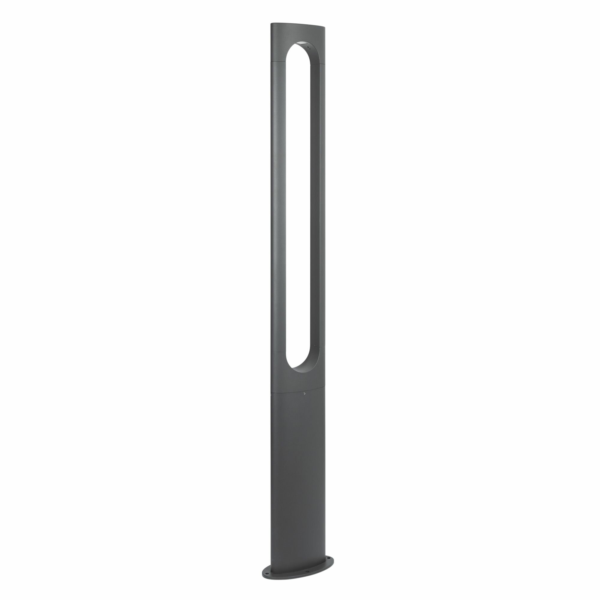 Уличный светодиодный светильник для подсветки дорожек. Мощность 18 Вт, св. поток 1550 лм, 86 лм/Вт, теплый 3000 K, CRI>80, угол 328°, напряжение питания 230 В. Темно-Серый фигурный корпус из алюминия, экран поликарбонат, степень защиты IP65. Размер: длина 230 мм, ширина 120 мм, высота 1500 мм. Монтаж накладной. Драйвер 35-42 В, 500 мА, пульсация