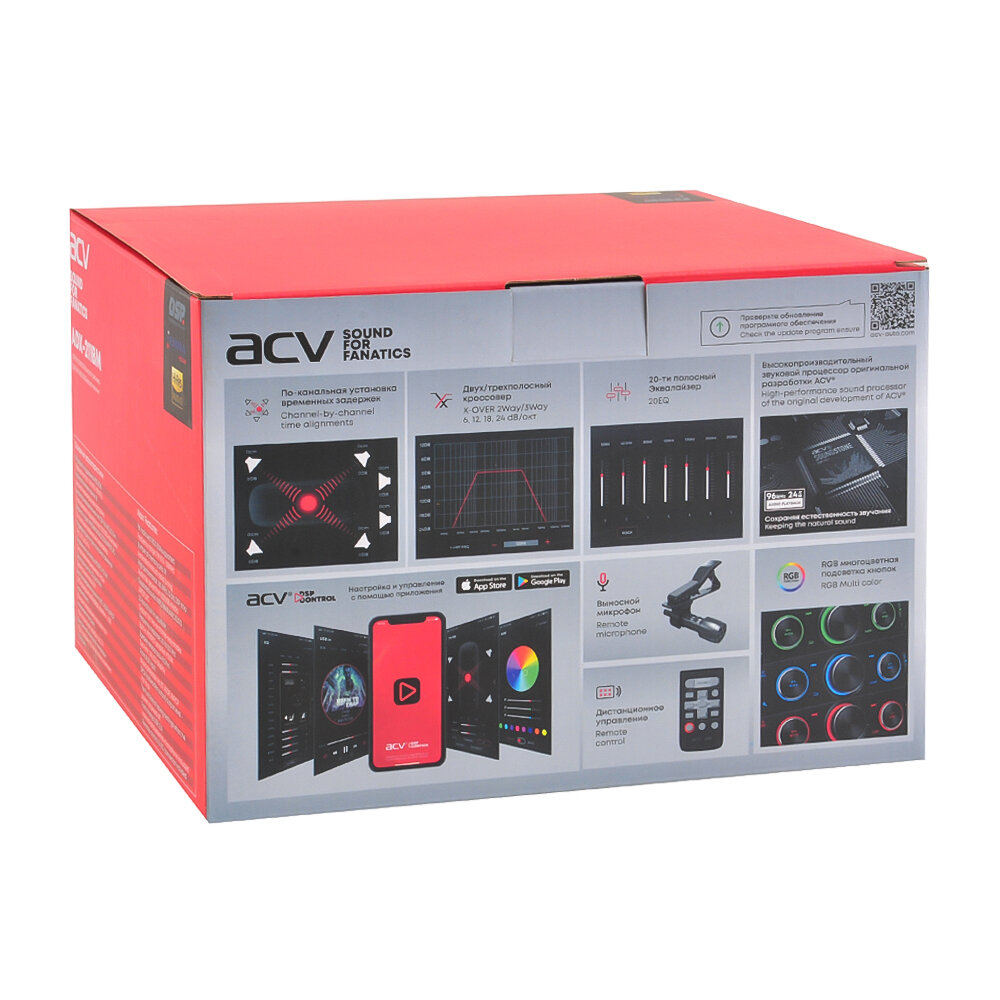 - Специально для моделей со встроенным DSP процессором было разработано приложение ACV DSP Control. Просто подключите смартфон iPhone или Android по Bluetooth и используйте приложение.