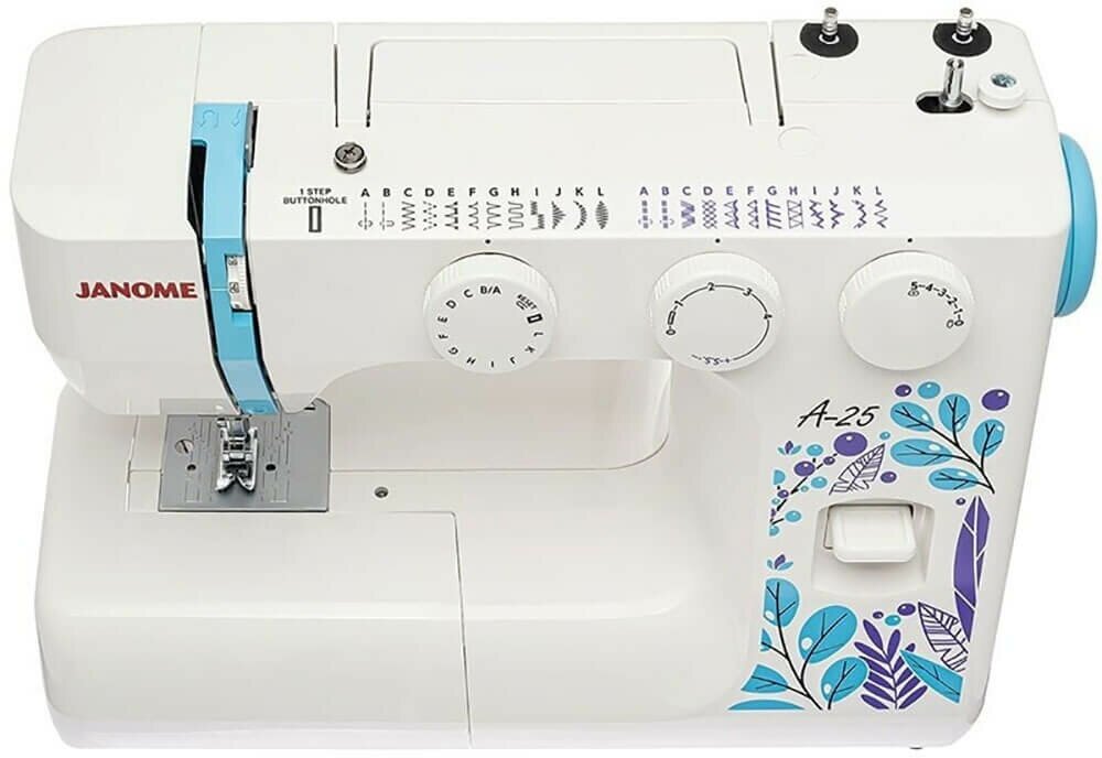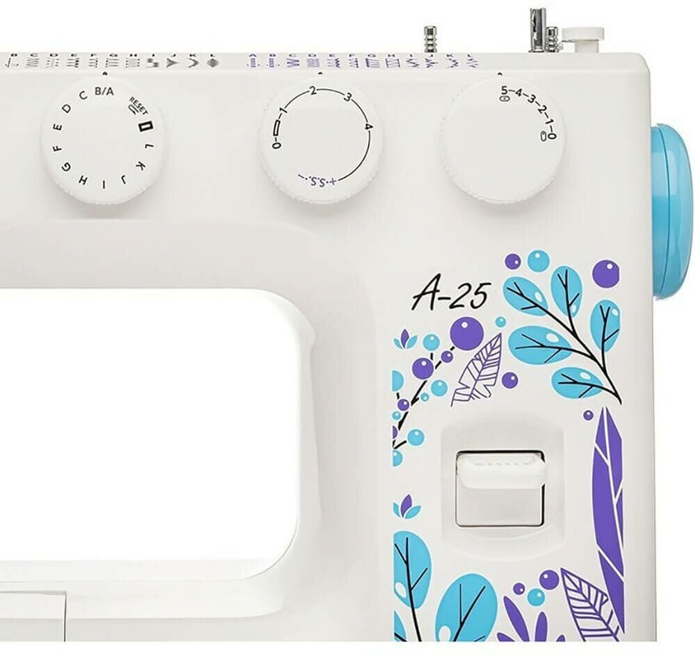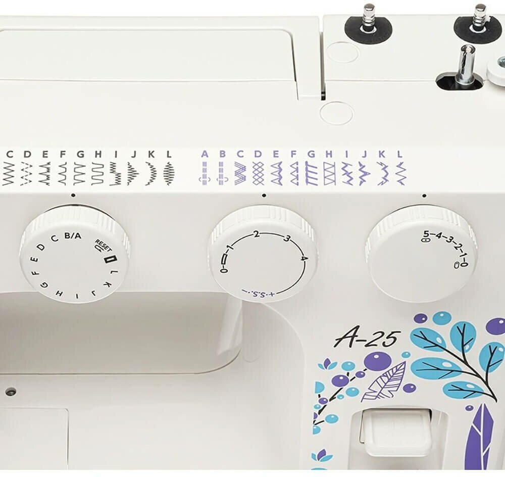 Модель A-25 предлагает очень широкий выбор строчек, среди которых прямые, зигзаги, эластичные, потайные, трикотажные, оверлочные и декоративные. Заправка машины требует минимальных усилий и времени благодаря автоматическому нитевдевателю.