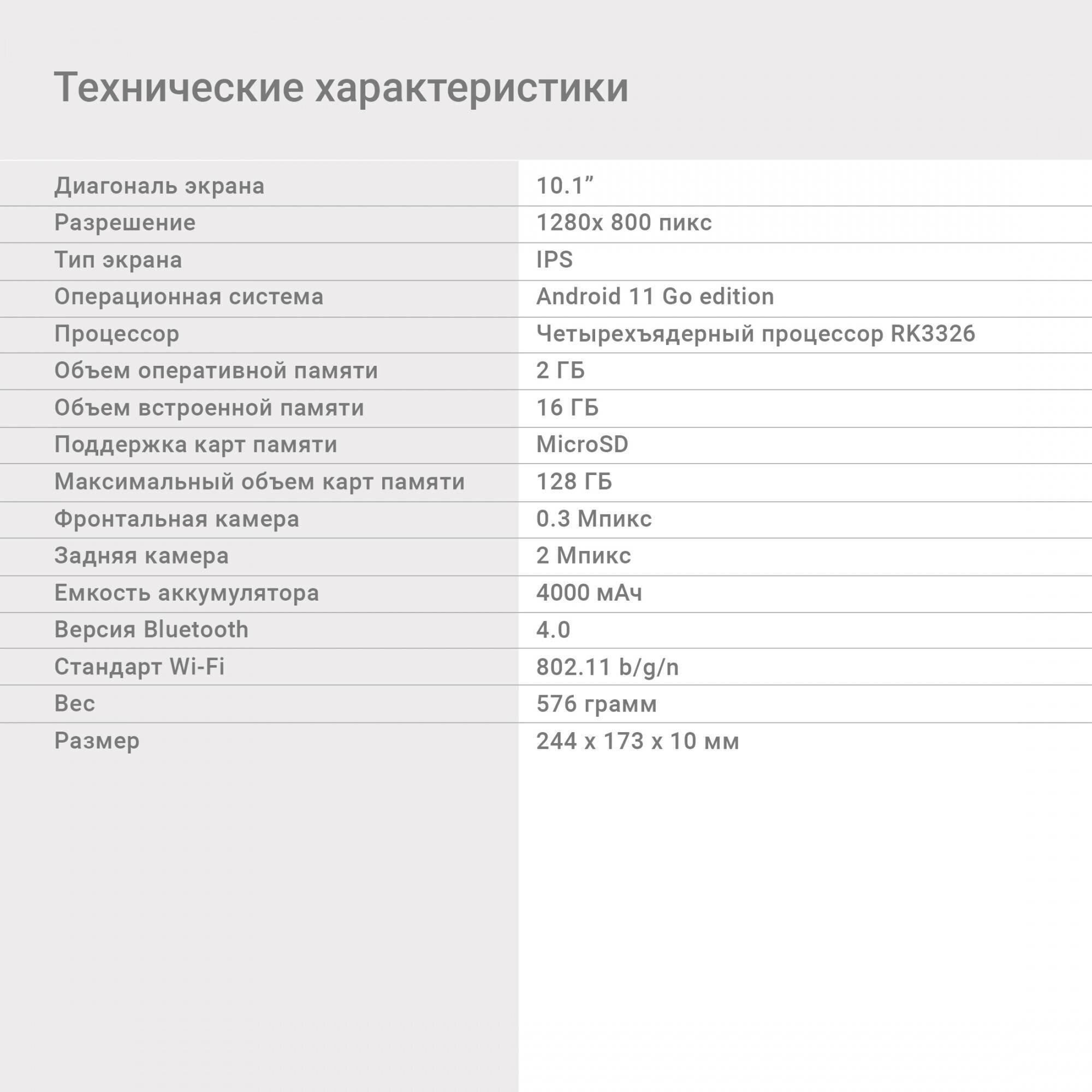 | Комплект * | Планшет. сетевой адаптер питания, USB-кабель, руководство, гарантия |