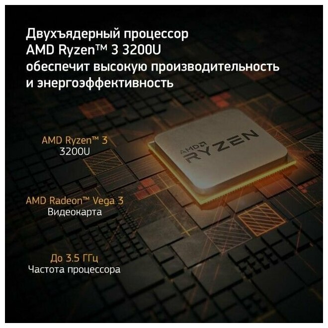 | Процессор | AMD Ryzen 3 3200U 2.6 ГГц (3.5 ГГц, в режиме Turbo) |