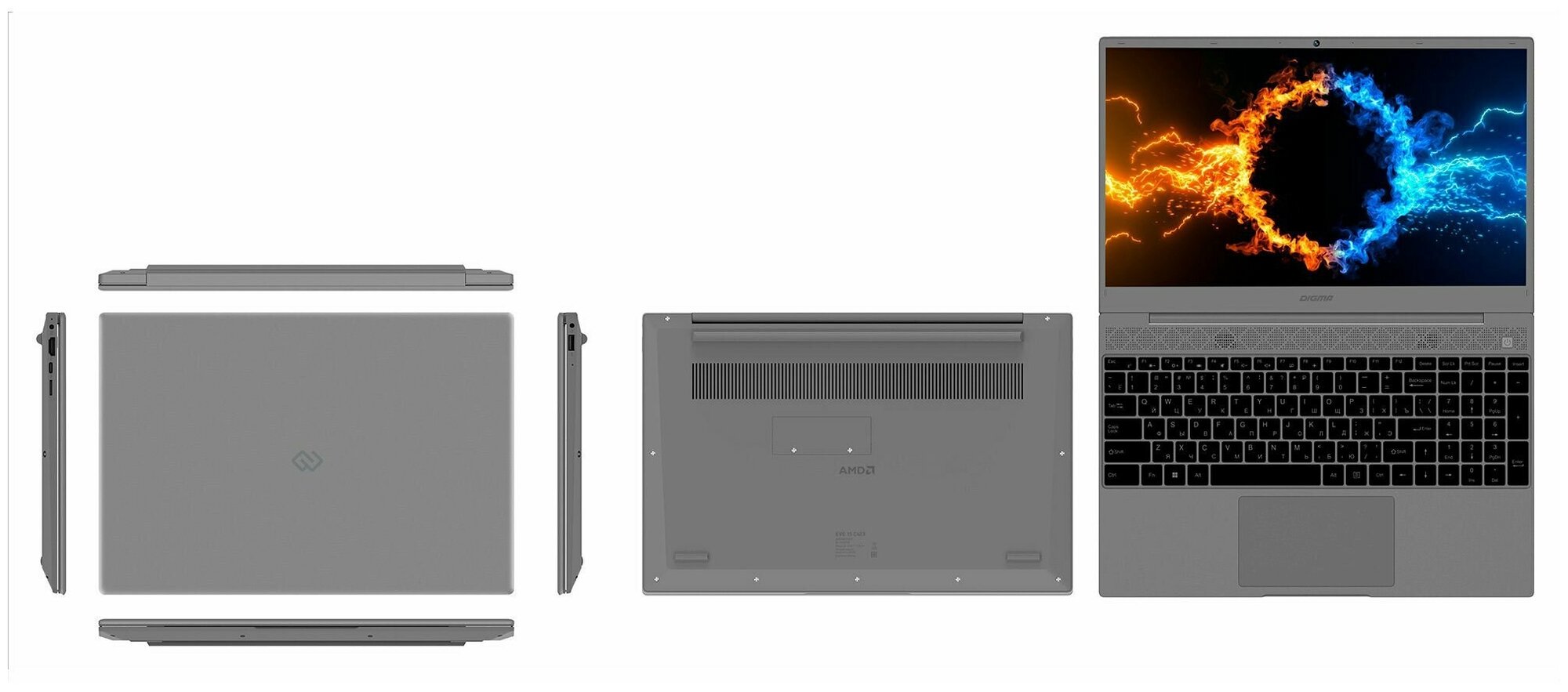 Ноутбук Digma EVE 15 C423 15.6" IPS AMD Ryzen 3 3200U DDR4 16ГБ SSD 512ГБ AMD Radeon Vega 3 серый космос (nr315adxw01)