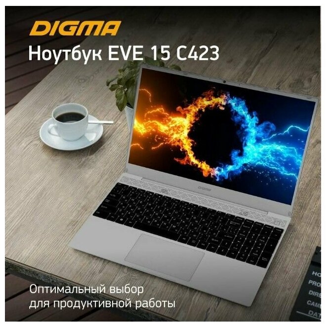 Ноутбук Digma Eve 15 (NR315ADXW01) — производительное устройство с востребованным функционалом. Оборудован микрофоном и веб-камерой, что дает возможность организовывать видеоконференции по работе и не только.