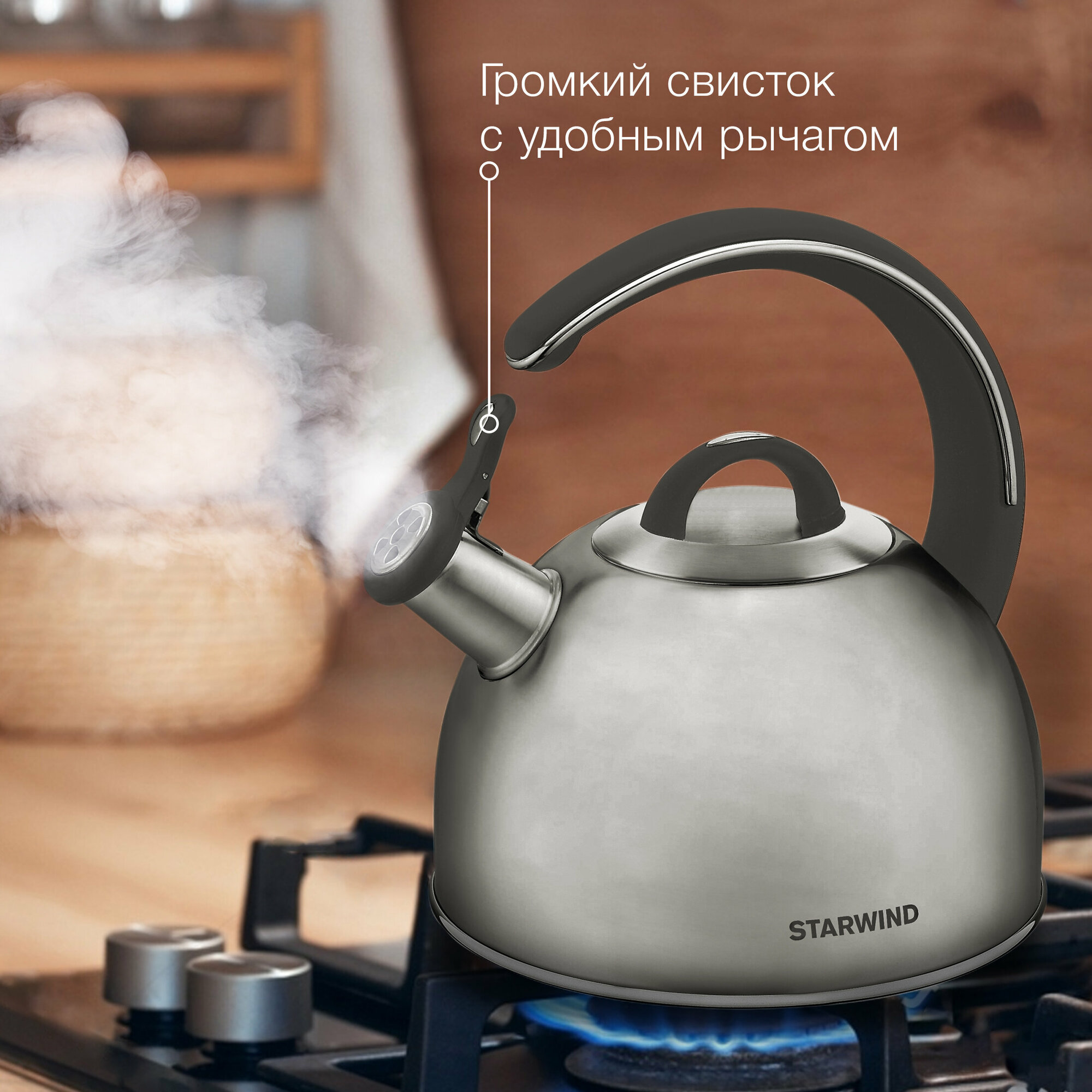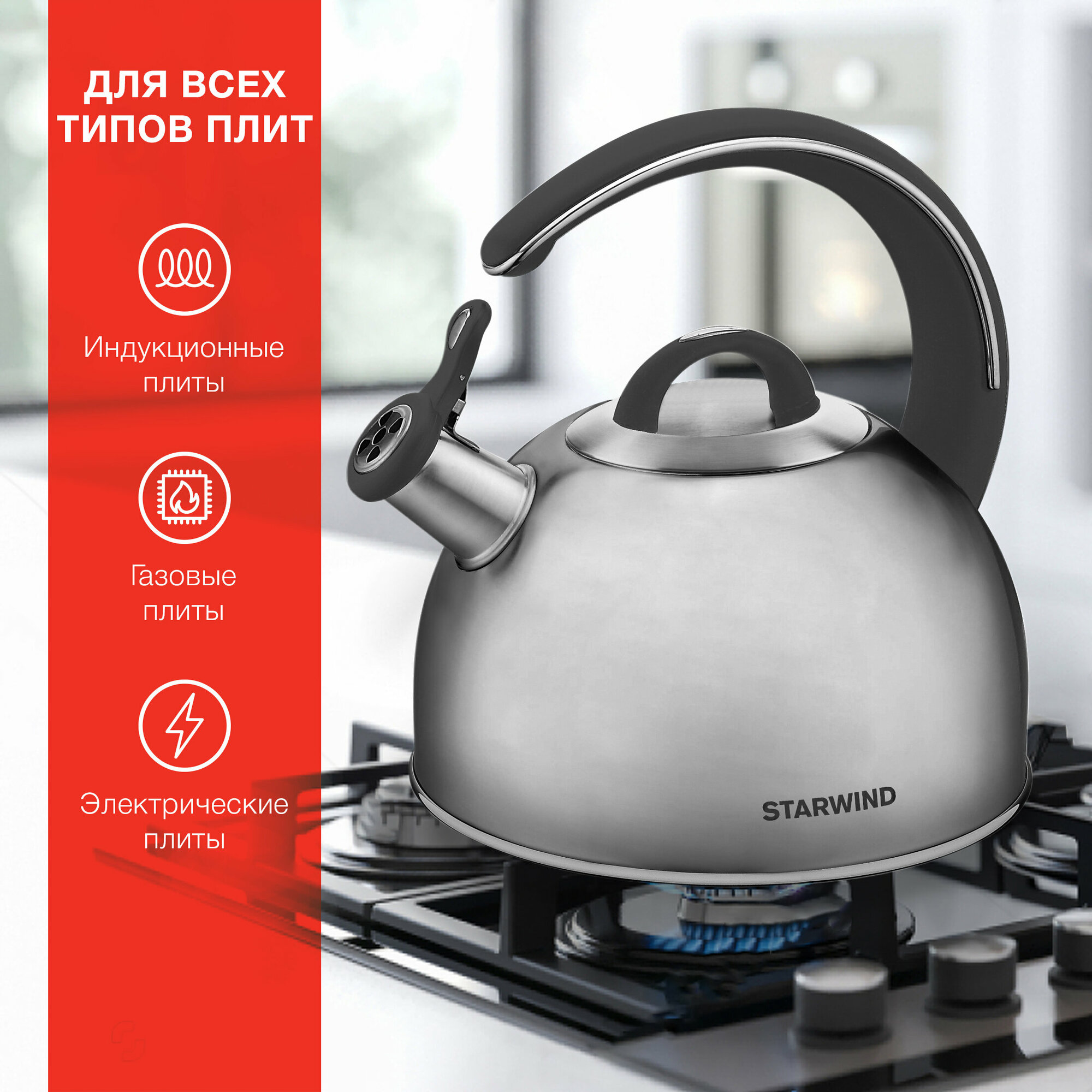 Чайник металлический Starwind Family серебристый, объем 2.8л., материал корпуса: сталь нержавеющая