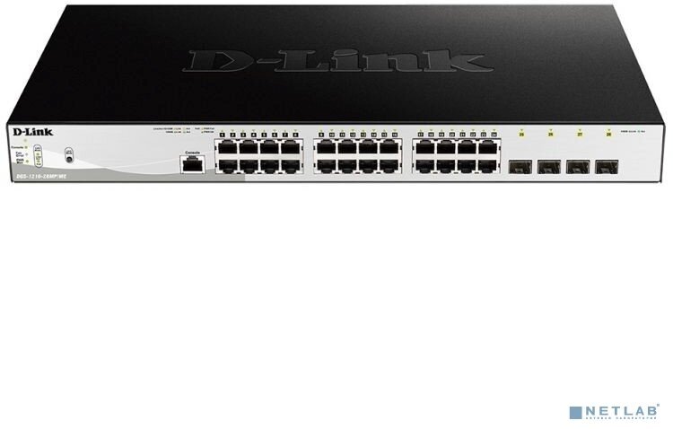 Коммутатор D-Link DGS-1210-28MP/ME/B управляемый, 24x10/100/1000BASE-T, 4x10/100/1000BASE-T/Mini GBIC (SFP)