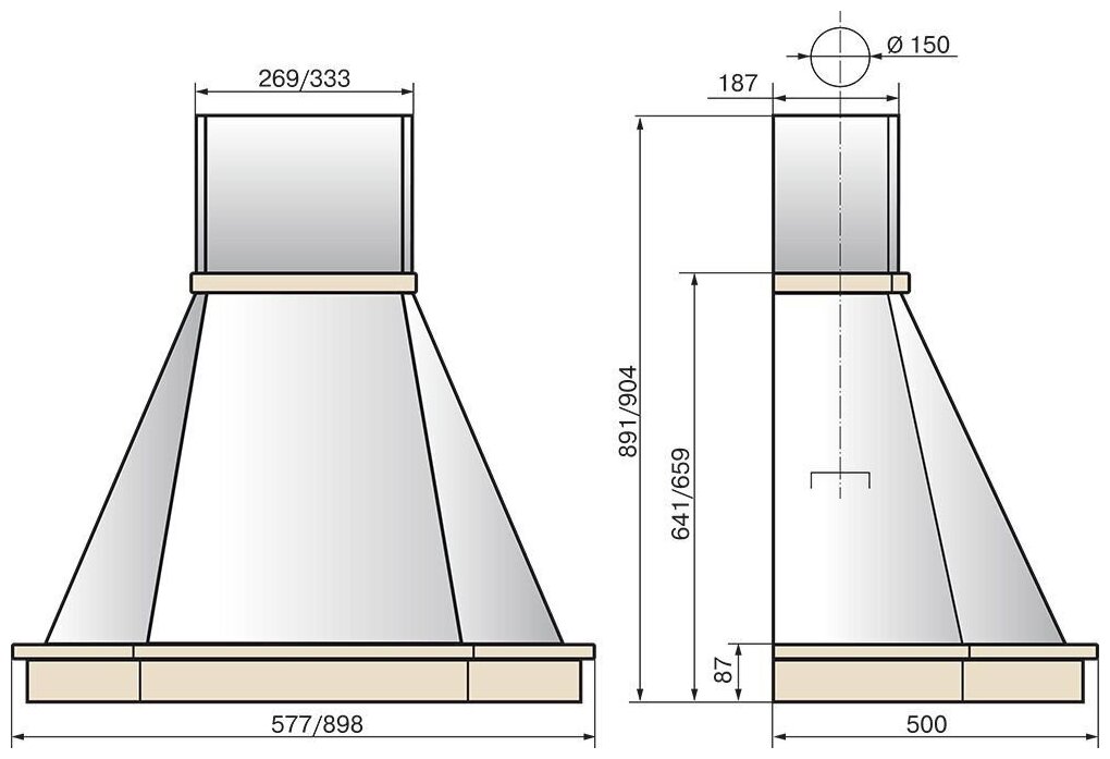 Вытяжка каминная Elikor Грань 60П-650-П3Л бежевый без багета
