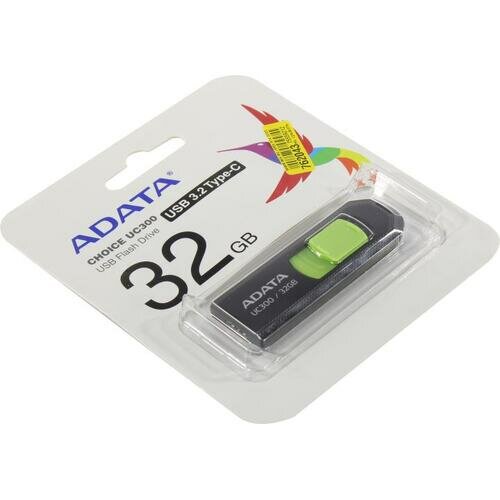 Флешка A-Data UC300 64ГБ USB3.2 черный/зеленый (ACHO-UC300-64G-RBK/GN)