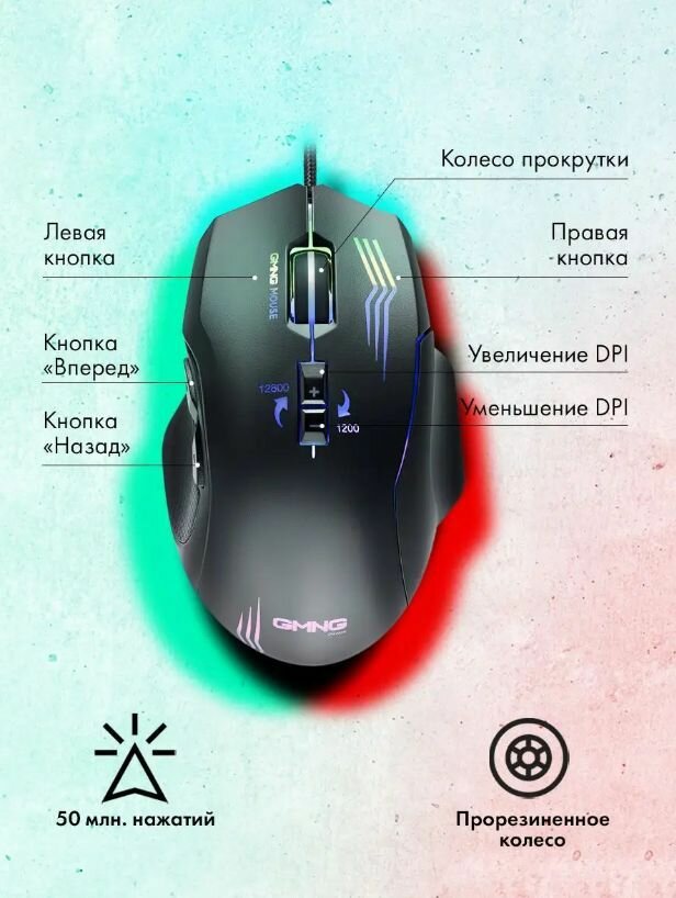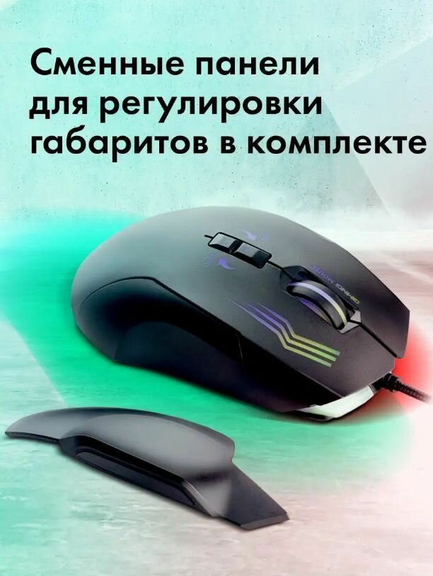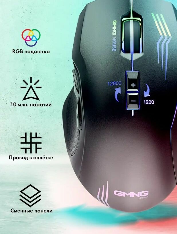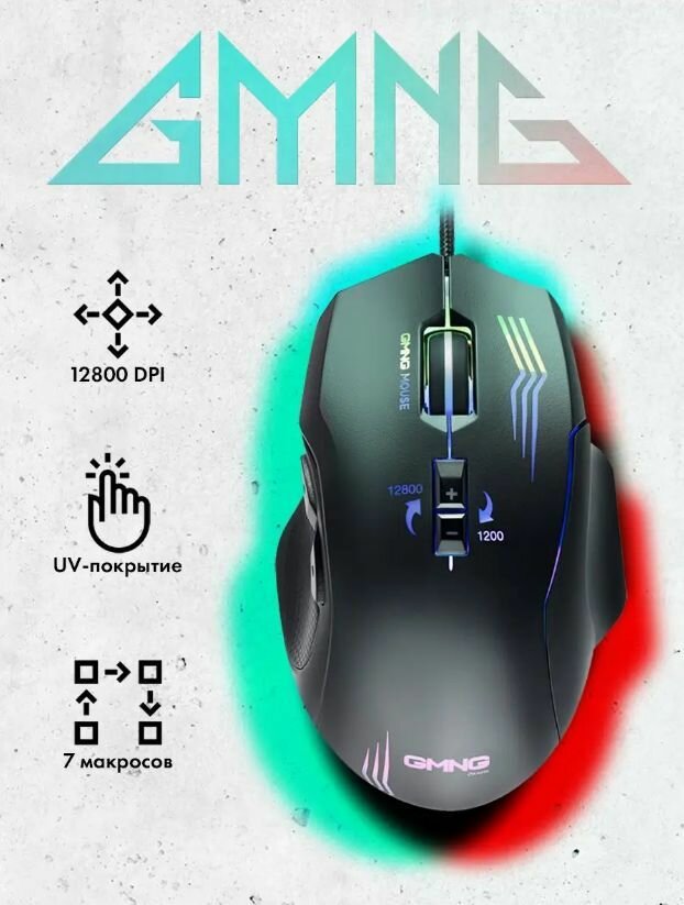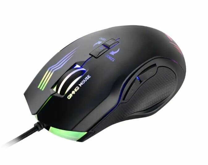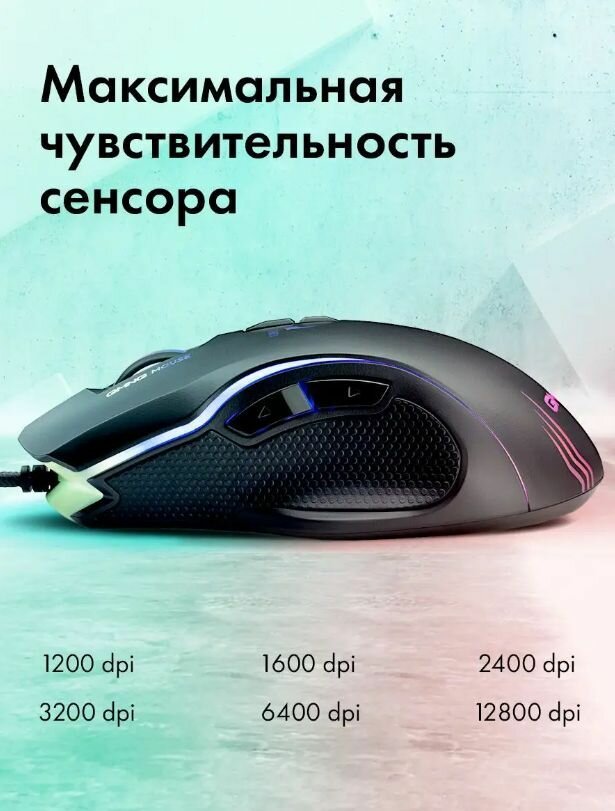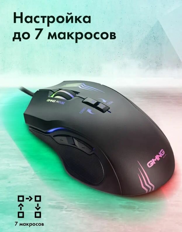 Мышь GMNG 930GM черный, оптическая, разрешение сенсора 12800dpi, для ноутбука, проводная, длина провода 1.8м, кнопок: 7, подходит для правой руки