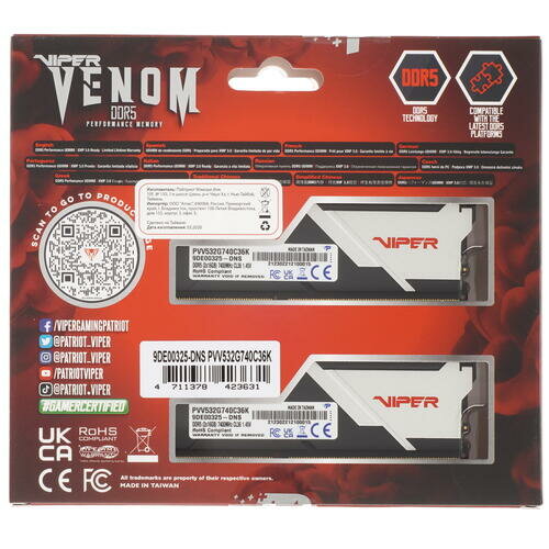 Оперативная память Patriot Viper Venom DDR5 - 2x 16Gb 7400 МГц DIMM CL36 (pvv532g740c36k)