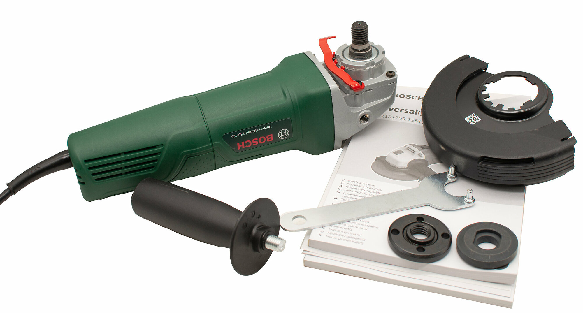 **УШМ сетевая Bosch UG 750-125** — угловая шлифовальная машина, предназначенная для выполнения строительных, ремонтных работ в быту и профессиональной сфере: шлифовки, заточки, резки, полировки и других типов обработки различных материалов. Подходит для работы с металлом, камнем, древесиной, бетоном, кирпич, пластиком, керамикой и другими материалами. Модель оснащена большим крутящим моментом и мощным мотором, обеспечивающими высокую производительность. За счет возможности блокировки шпинделя получается быстро и удобно менять оснастку.