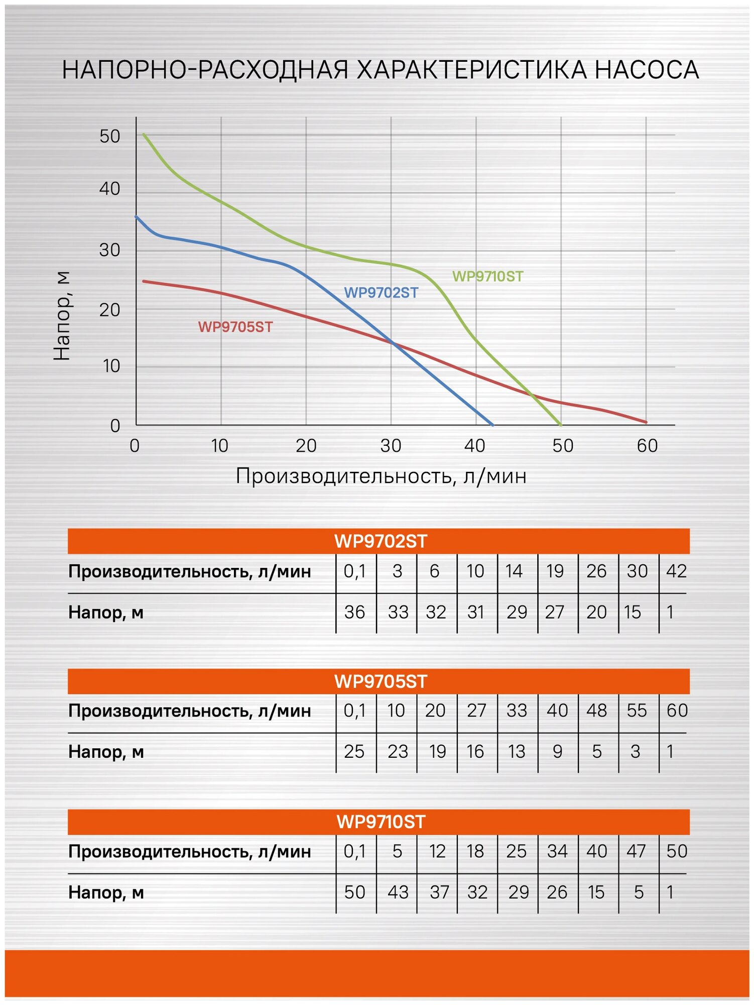Поверхностный насос Sturm WP9705ST предназначен для перекачивания чистой воды и химически не агрессивных жидкостей.