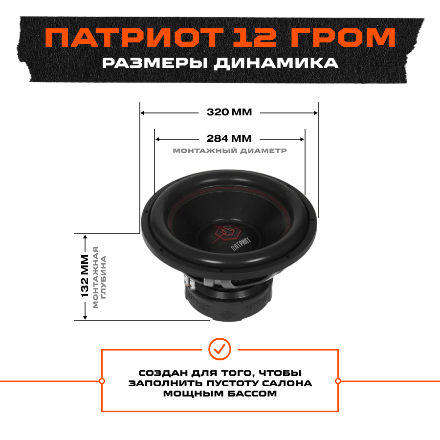 Сабвуфер автомобильный Ural Патриот 12 ГРОМ, максимальная мощность 3000Вт, размер динамика 30 см (12 дюйм.), пассивный (УРАЛ ПАТРИОТ 12 ГРОМ)