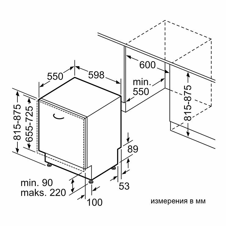| Размер ниши, мм (В*Ш*Г) | 815*875*550 |