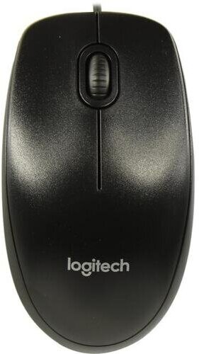 Мышь Logitech B100 for business черный, оптическая, разрешение сенсора 1000dpi, проводная, длина провода 1.8м, кнопок: 2, подходит для правой и левой руки (910-003357/910-006605)