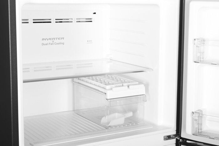 Это обеспечивает оптимальное охлаждение как в морозильной, так и в холодильной камерах, чего не может сделать один вентилятор. Улучшенное охлаждение с двумя вентиляторами обеспечивает энергосбережение и мощное охлаждение, поддерживаемое термодатчиком Eco Thermo-Sensor в каждом отделении, постоянно обнаруживающим любые изменения температуры.