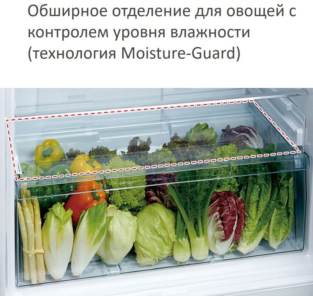 | Внутреннее оснащение | Дверные корзины (прозрачные) - 3 шт., Полка для бутылок, Ящик для фруктов и овощей |