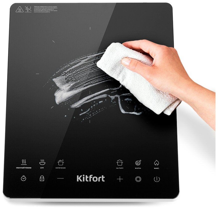 Инфракрасная плита KT-140 практична и экономична. Она выполнена в пластиковом корпусе с рабочей поверхностью из стеклокерамики и обладает мощностью до 2000 Вт! Плита использует современные технологии и приготовит ваши любимые блюда вкусно и быстро!В отличие от индукционных плит, инфракрасные плиты не имеют импульсного режима. Нагрев происходит постоянно даже на самых минимальных мощностях. Стеклокерамическая поверхность нагревается только от контакта с горячей посудой.Плита имеет 4 автоматические программы: жарка, кипячение, на пару, суп и 1 базовую программу, где вы можете настроить необходимый нагрев до 2000 Вт! В плите встроен таймер до 24 часов и функция блокировки кнопок, которая сохранит заданные вами настройки.Перед тем как очистить плиту, дождитесь остывания рабочей поверхности до комнатной температуры. Затем вы можете с легкостью убрать поверхность плиты от остатков пищи и прочих загрязнений.Для инфракрасной плиты Kitfort KT-140 подходит практическая любая посуда, однако рекомендуется использовать посуду с плоским дном и диаметром 12-18 см. Плита выдерживает вес не более 10 кг.На обратной стороне плиты встроен вентилятор, который охлаждает устройство во время интенсивной работы и после её завершения. Плита оборудована противоскользящими ножками, которые придают ей устойчивое положение на любых поверхностях.Устройство имеет лаконичный дизайн и компактные размеры: 28 х 36 см, благодаря чему она с лёгкостью впишется в интерьер даже маленькой кухни. Такую плиту удобно взять с собой в дорогу, в поход или на дачу!