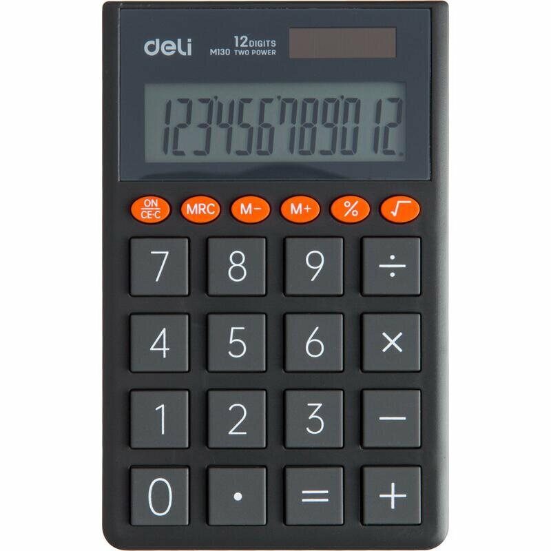 Калькулятор карманный Deli EM130D-GREY темно-серый, дисплей: 12-разрядный, однострочный, монохромный, питание комбинированное