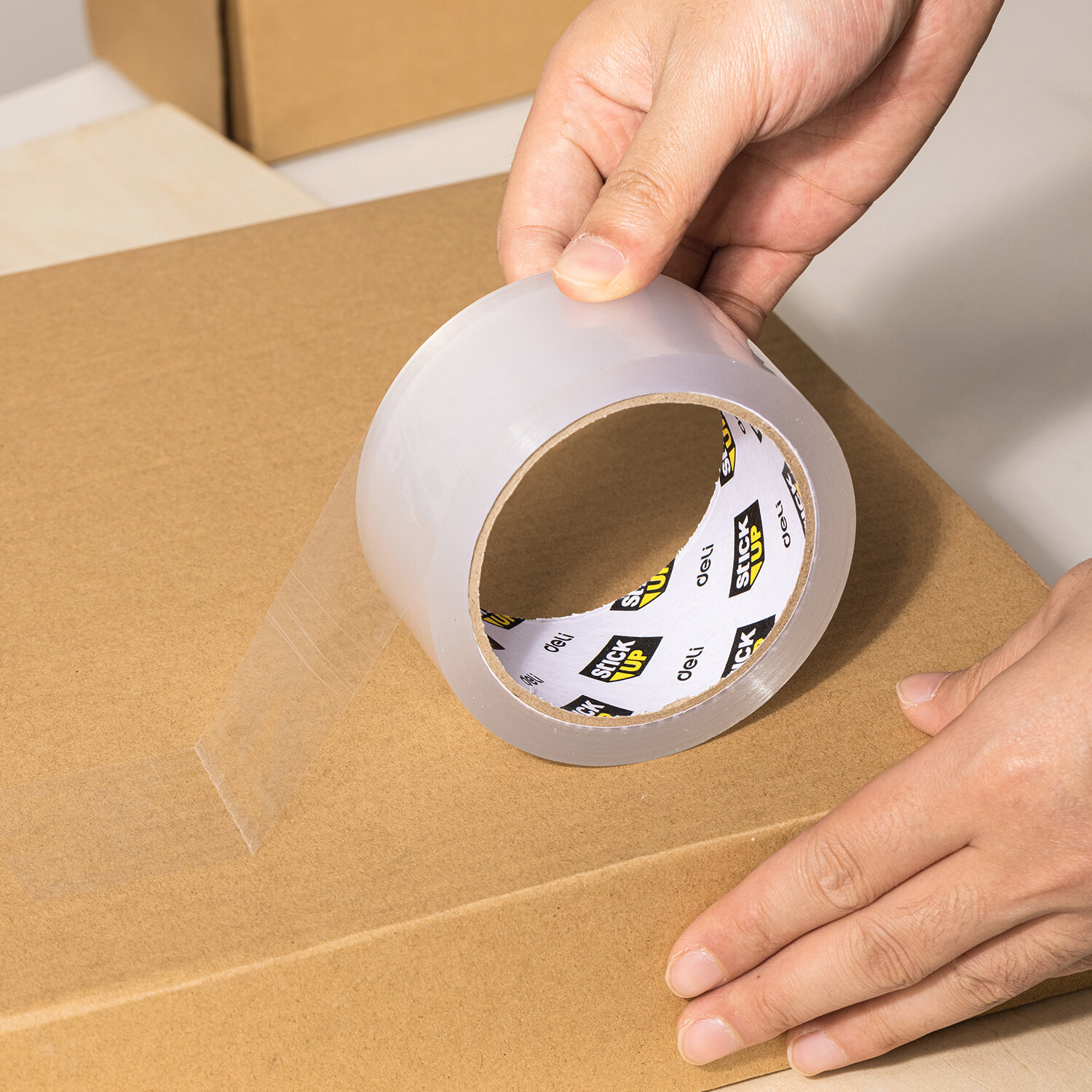 Клейкая лента упаковочная Deli EA319 прозрачная, ширина 48мм, длина 91.5м, в упаковке: 6шт.